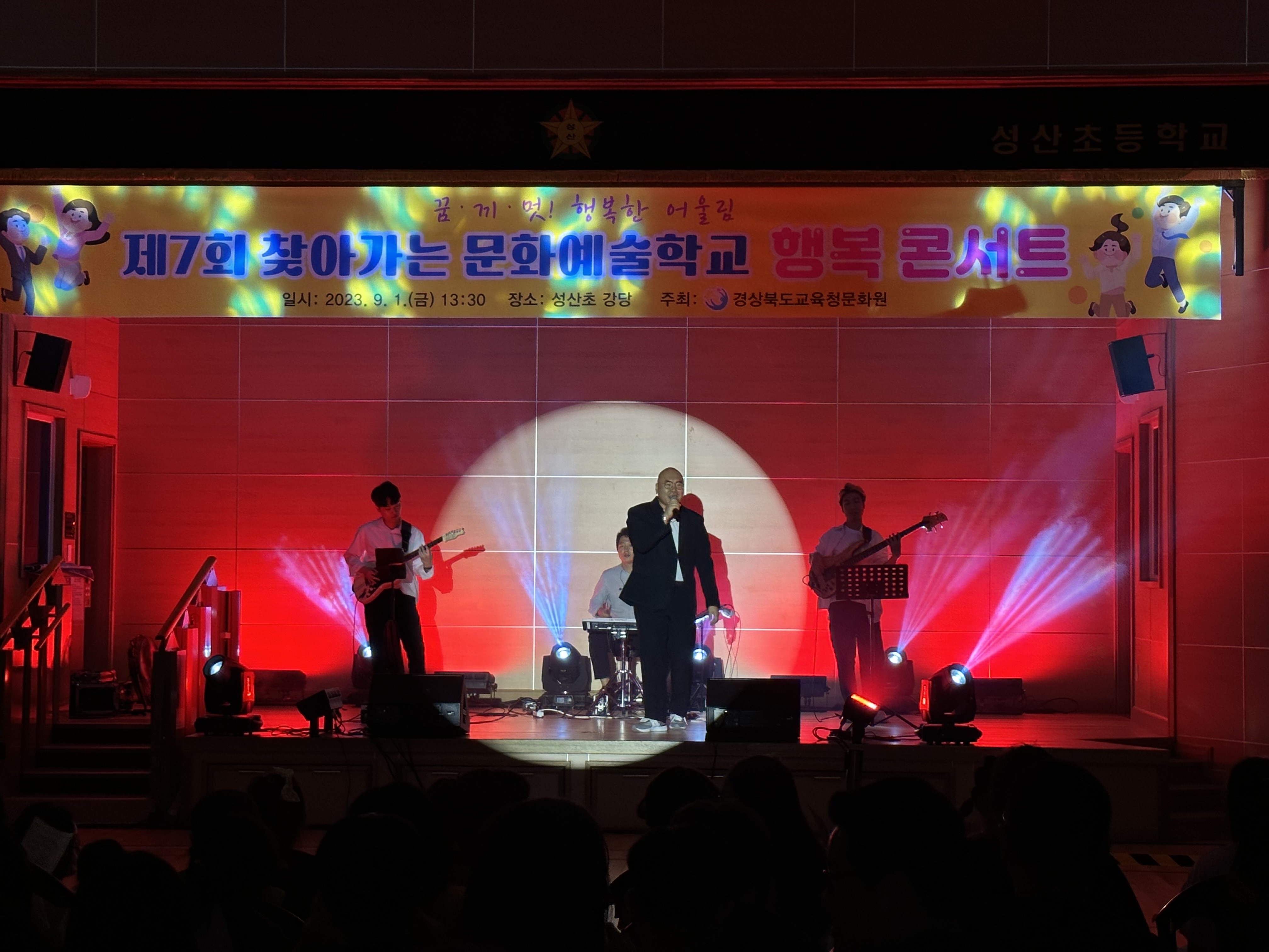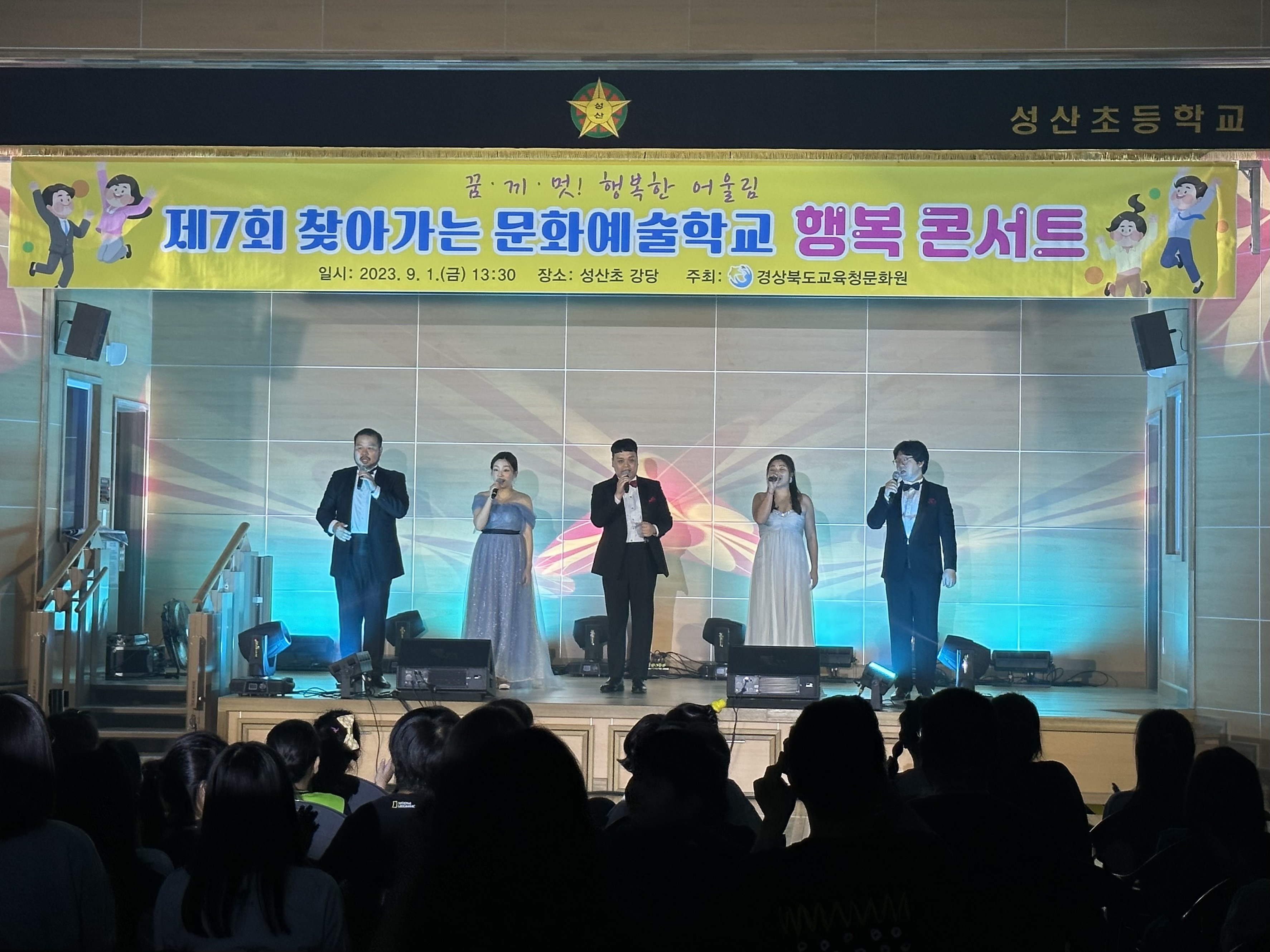 경상북도교육청문화원(원장 임미화)은 2023년 9월 1일(금)에 고령 성산초등학교 강당에서 성산초, 박곡초, 성산중학교 학생들과 교직원, 학부모를 대상으로‘제7회 찾아가는 문화예술학교’를 운영하였다.