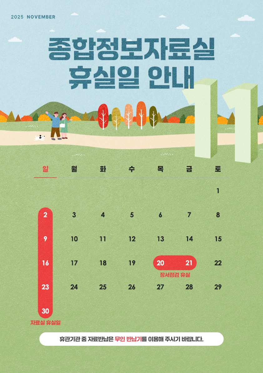 장서점검으로 인한 종합정보자료실 휴실 안내