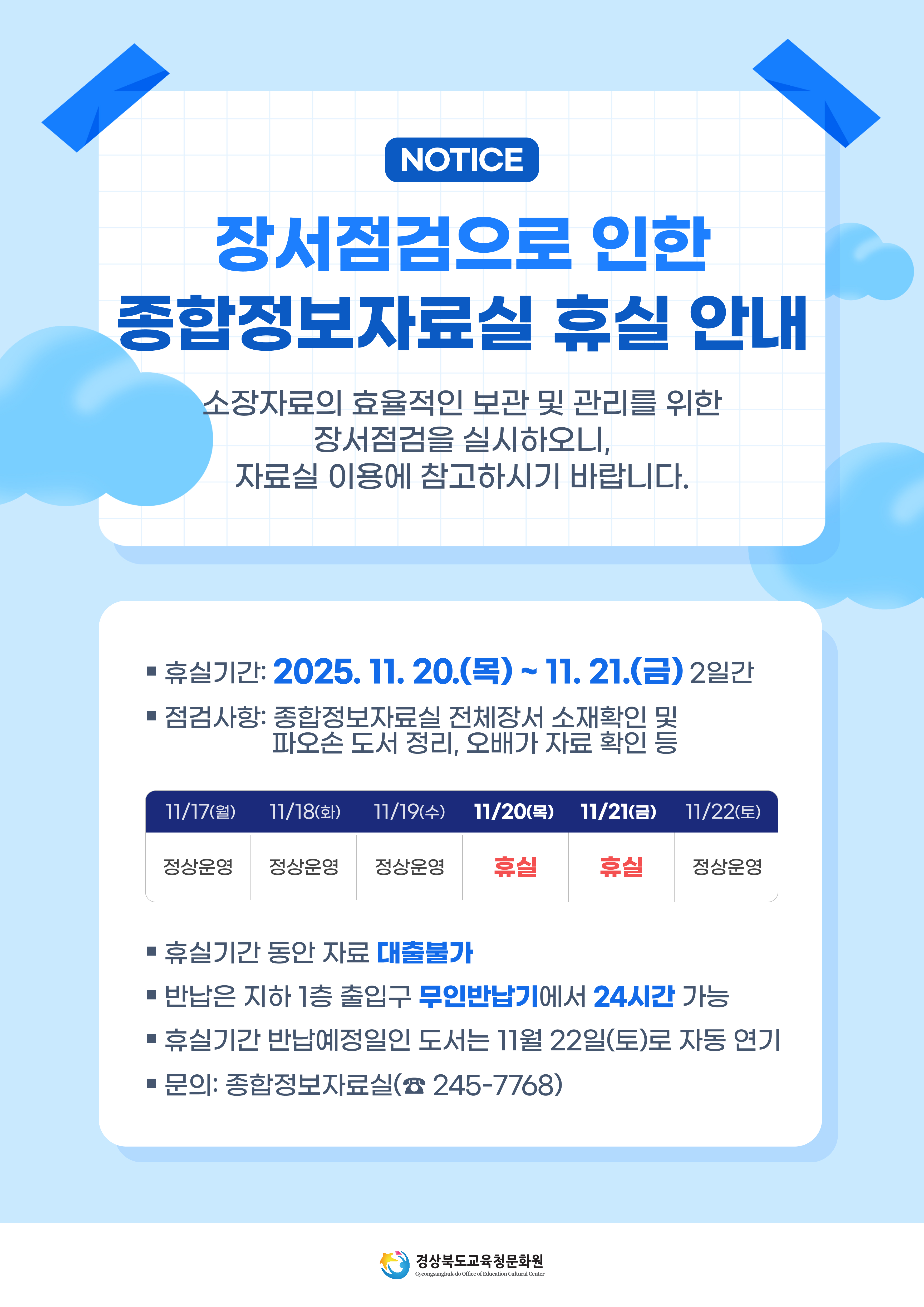 장서점검으로 인한 종합정보자료실 휴실 안내