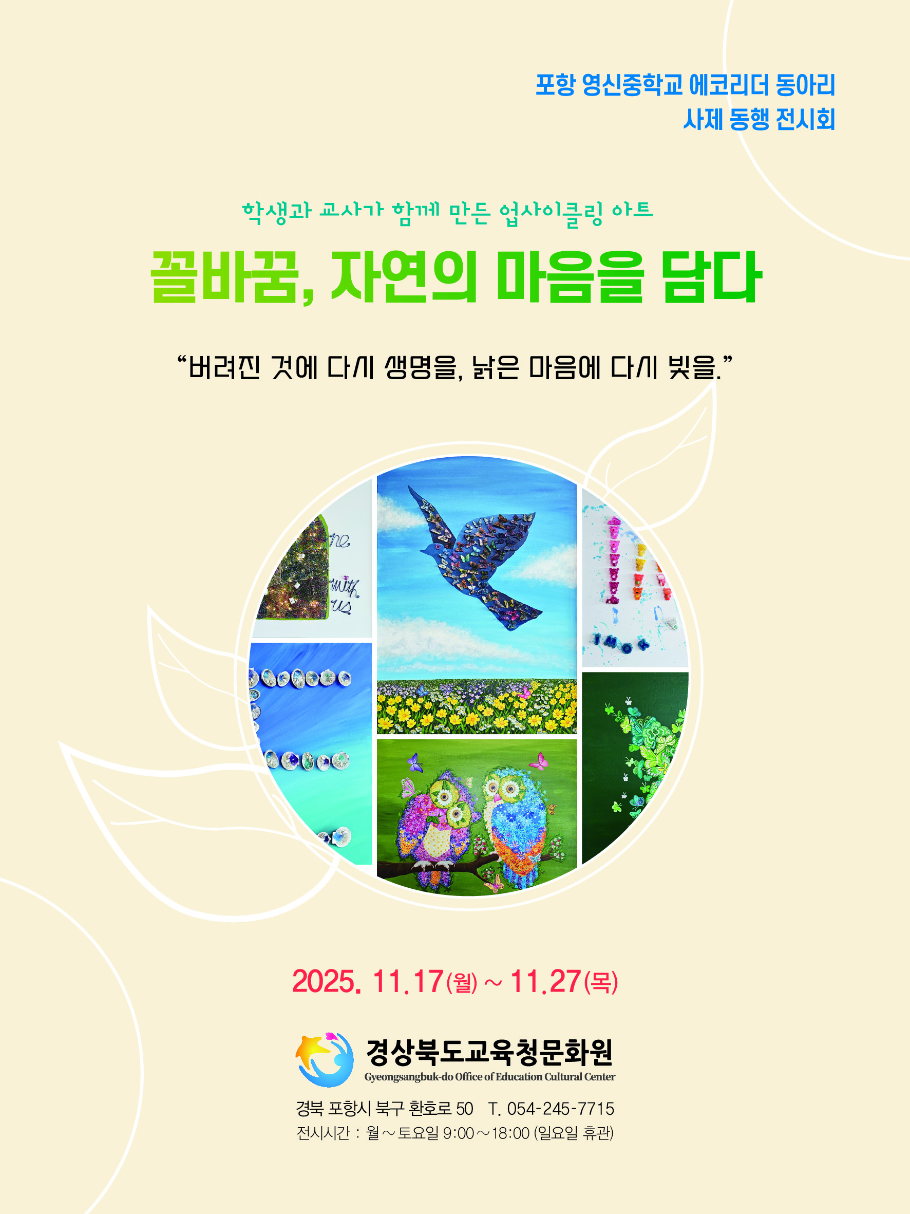 경북교육청문화원, 초청전시 ‘포항영신중학교, 꼴바꿈: 자연의 마음을 담다’ 개최 - 11. 17.(월)~11. 27.(목) 에코리더동아리 공예 작품 40여 점 선보여 - |