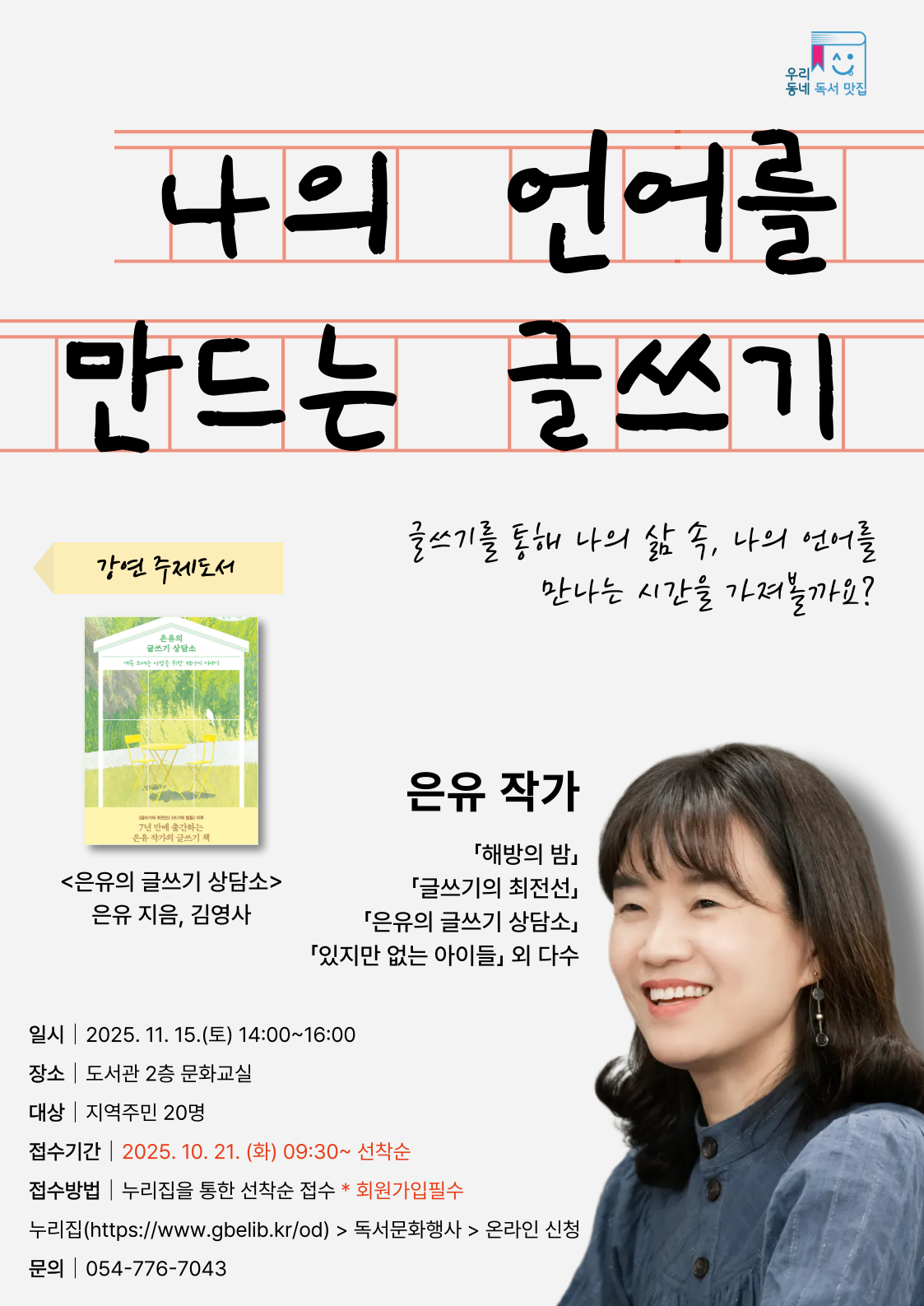 - 2025년 외동도서관 중점사업 「우리동네 독서맛집 - 세번째 메뉴. 책 더하기 당신」2강 운영