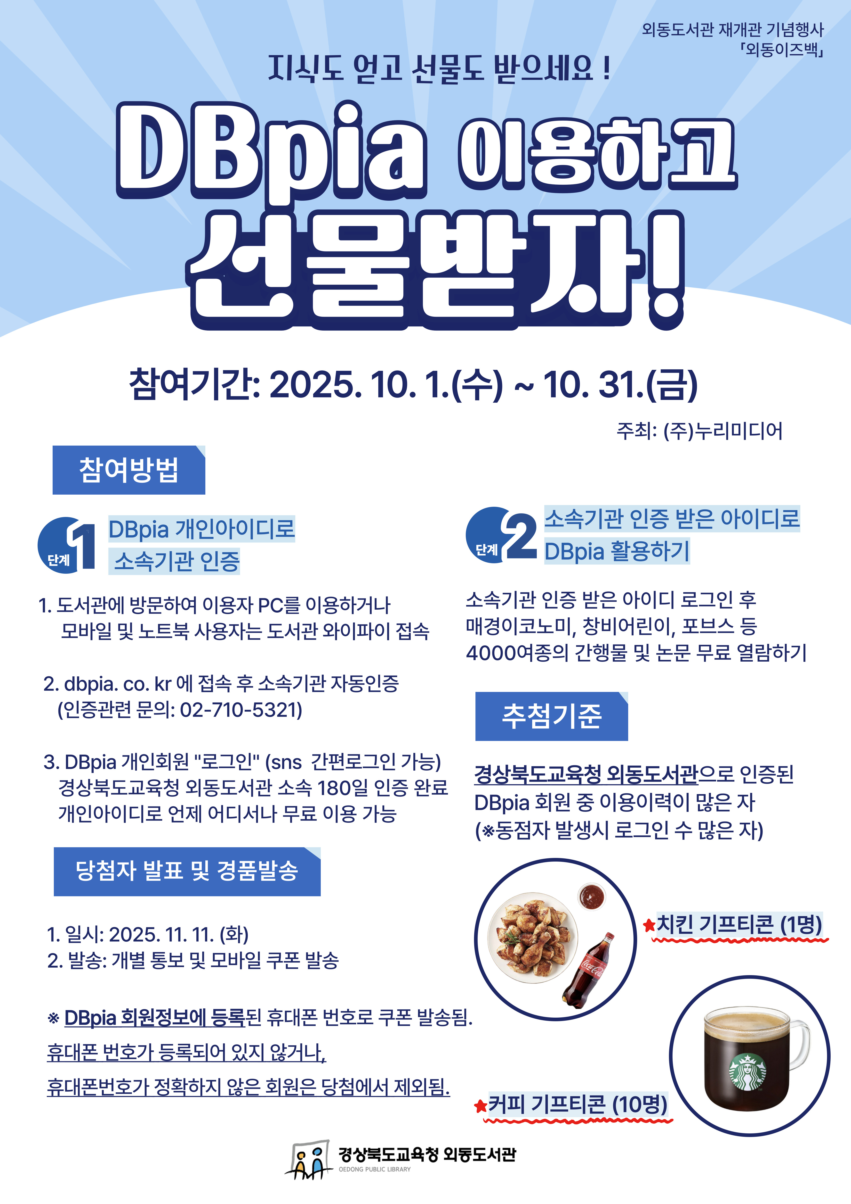[외동도서관 재개관 기념행사] DBpia 이용하고 선물 받자!