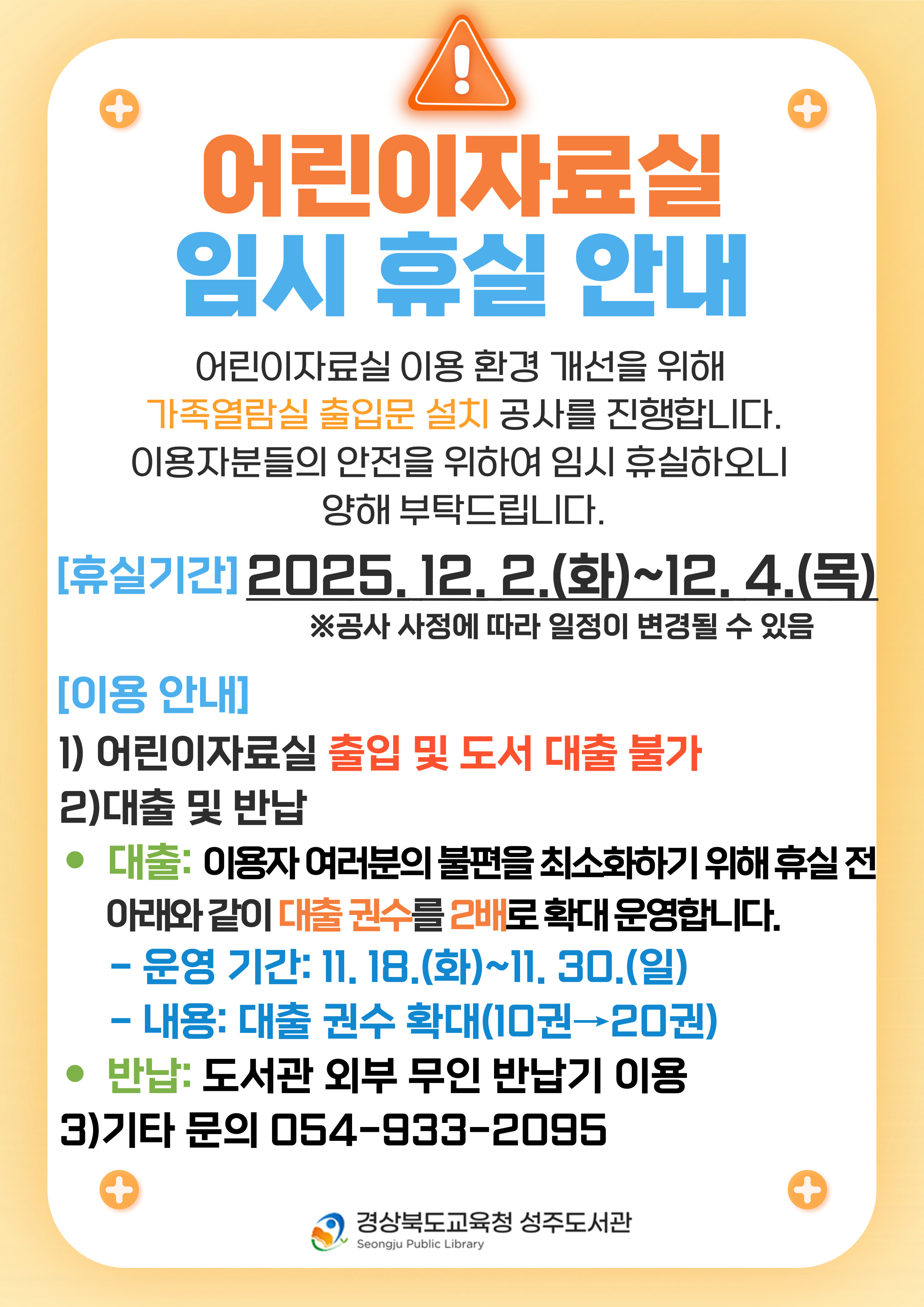 어린이자료실 임시 휴실 안내[12. 2.(화)~12. 4.(목)]