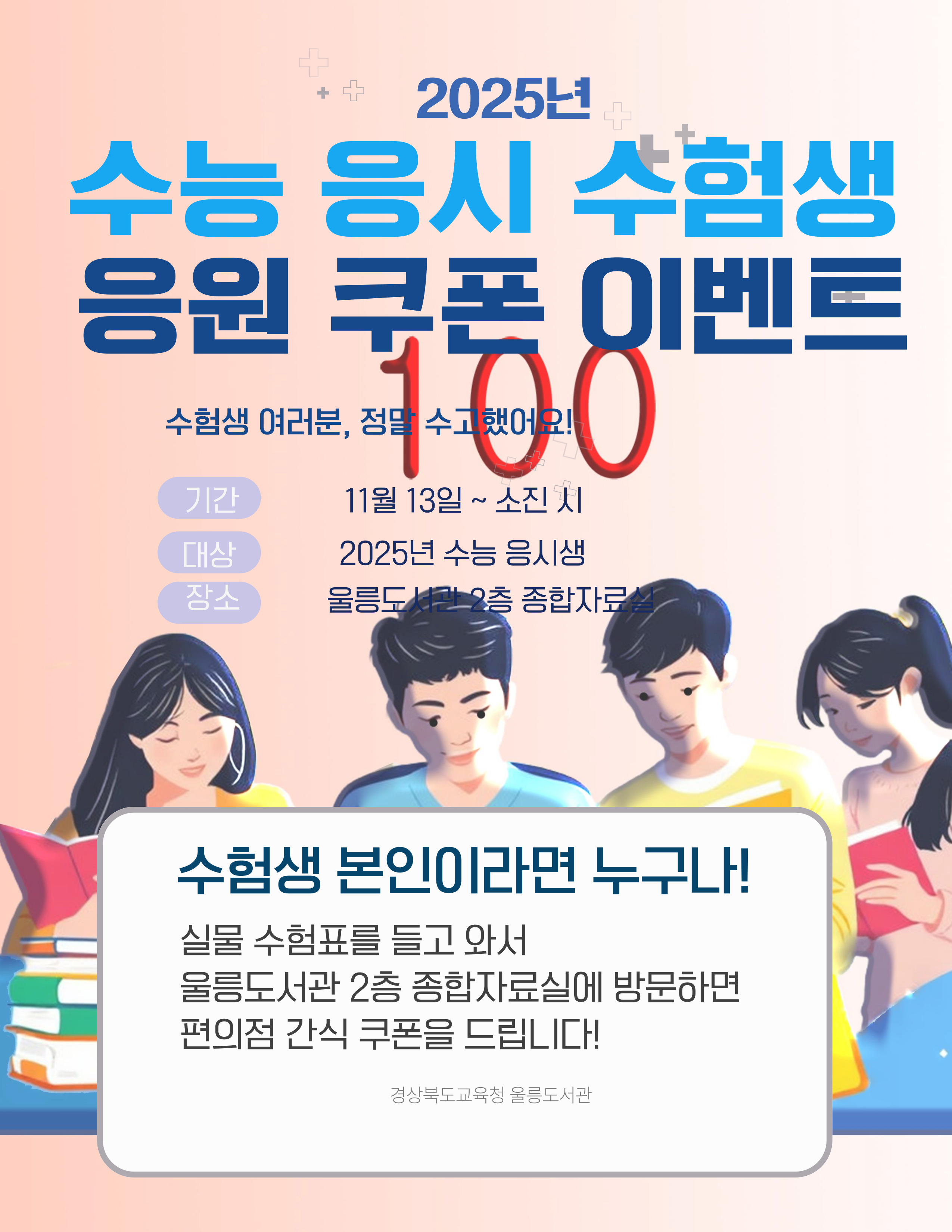 - 2025년 울릉도서관 수능 응시 수험생 응원 쿠폰 이벤트