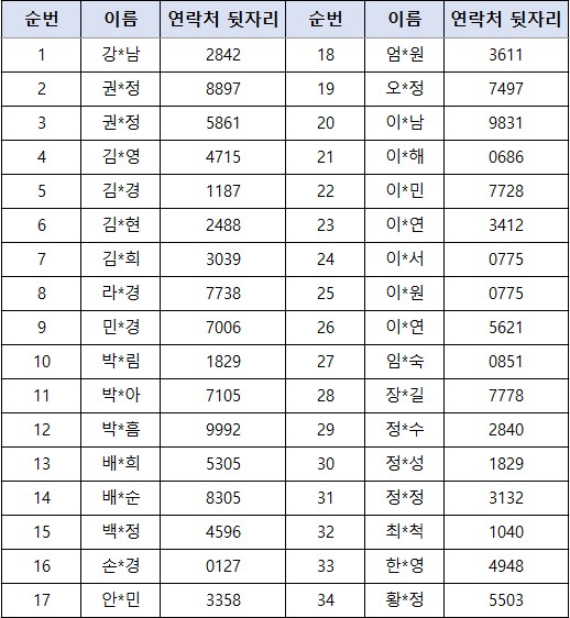 당첨자에게는 응모 시 기재된 연락처로 문자를 발송하였습니다. 종합자료실에서 상품 수령해가시기 바랍니다.