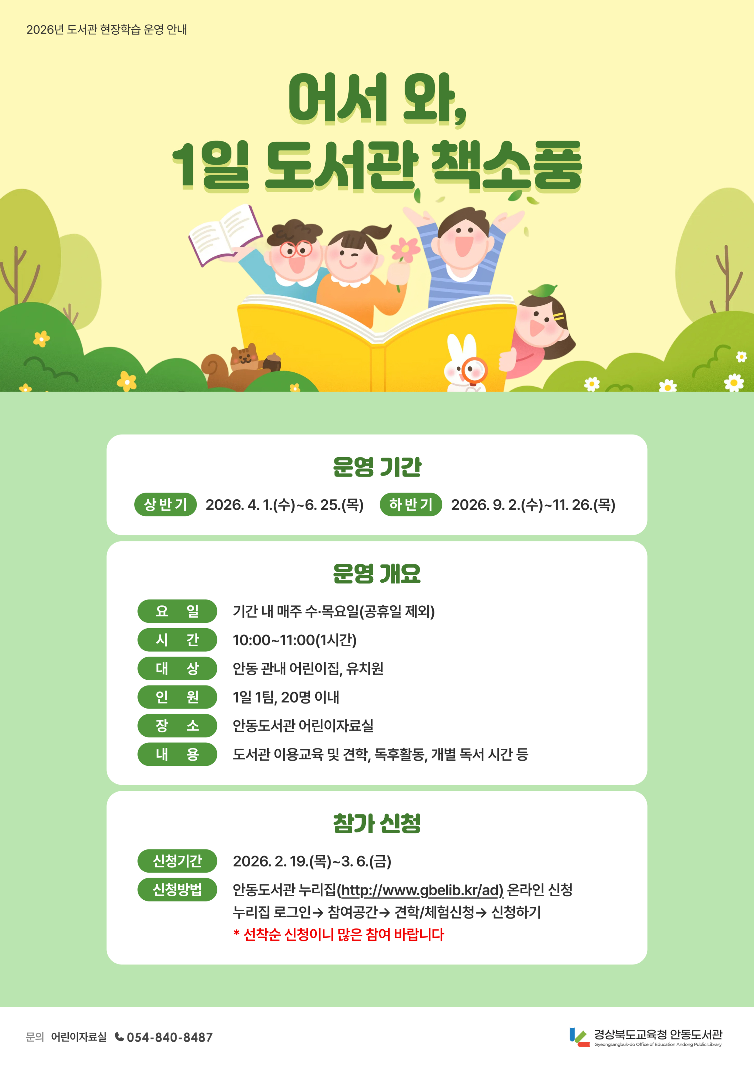 2026년 「어서 와, 1일 도서관 책소풍」운영 안내