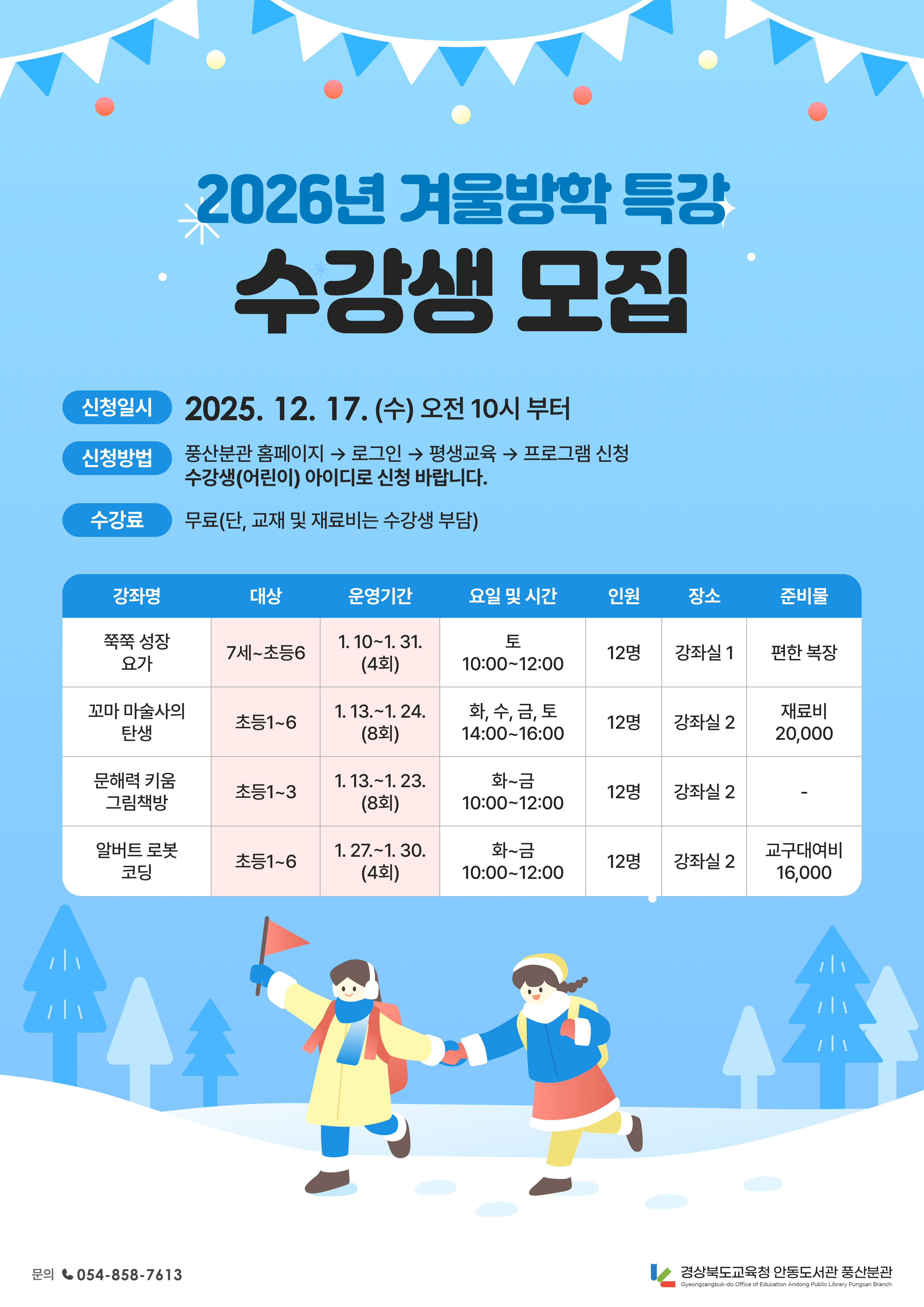 ♥2026년 겨울방학특강♥ 수강생을 모집합니다!