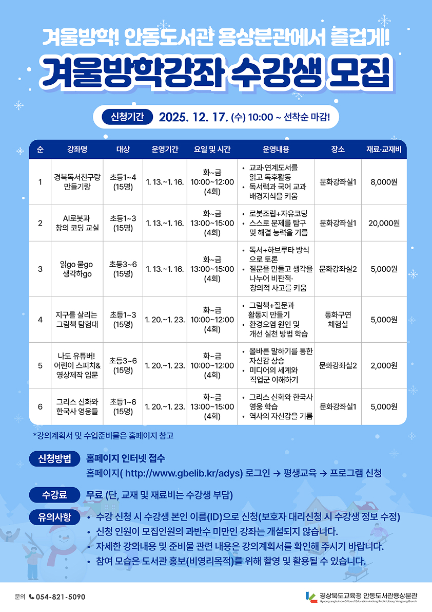 2026년 겨울독서교실 참가자 모집 안내