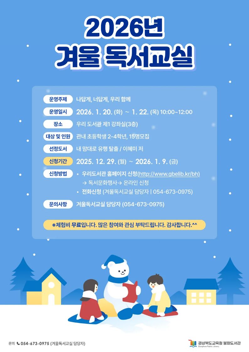 2026년 경상북도교육청 봉화도서관 기간제근로자(청소원) 채용 공고)(2차)