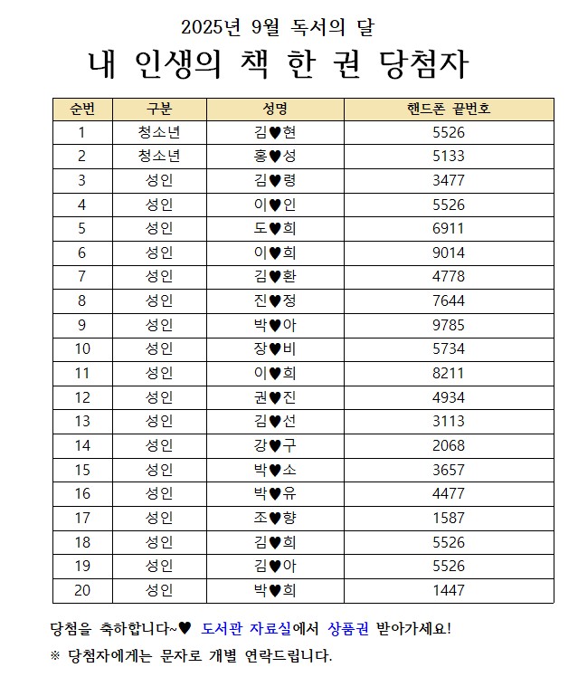 2025년 9월 독서의 달 「내 인생의 책 한 권」당첨자 .jpg