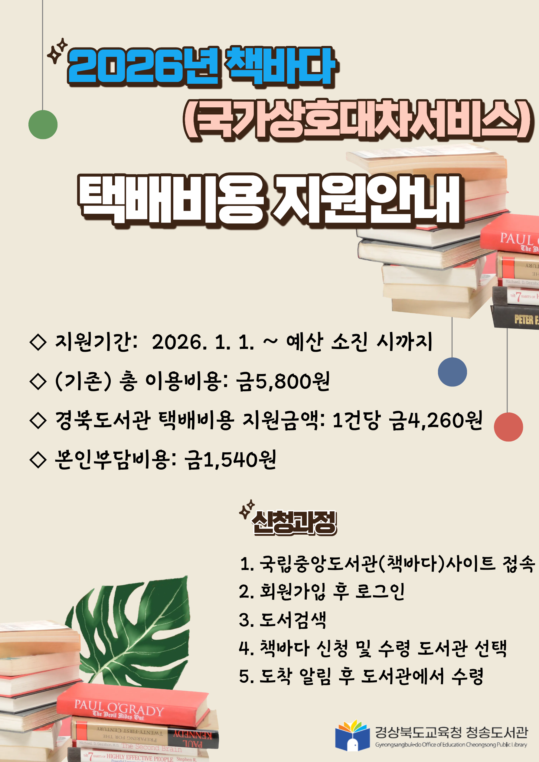 2026년 책바다(국가상호대차서비스) 택배비용 지원 안내