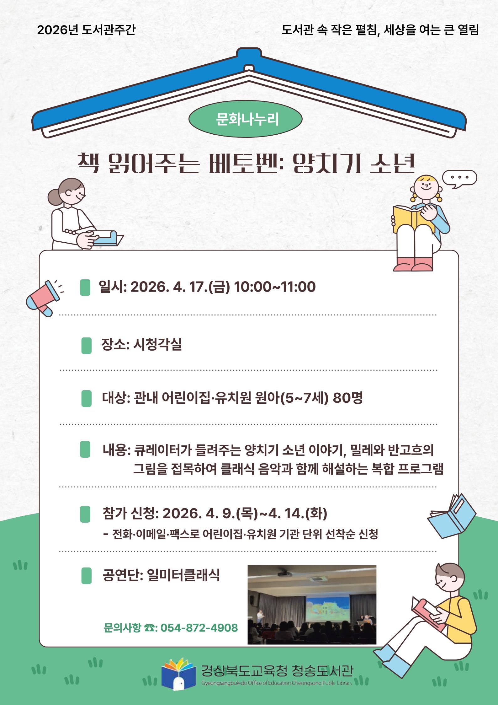 2026년 도서관주간 문화나누리 공연: 클래식 콘서트 「책 읽어주는 베토벤: 양치기 소년」