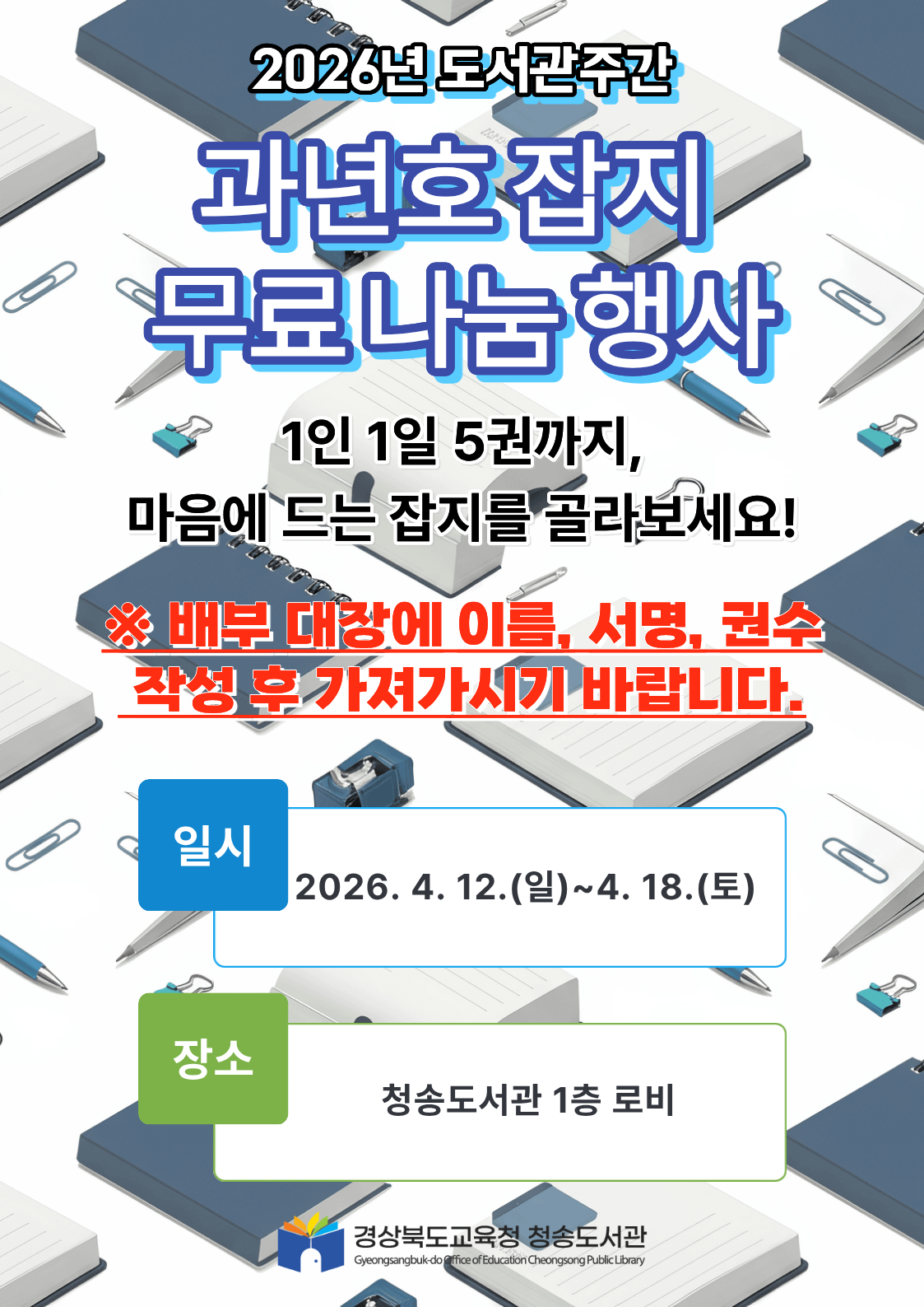 - 2026년 도서관주간 과년호 잡지 이용자 나눔행사