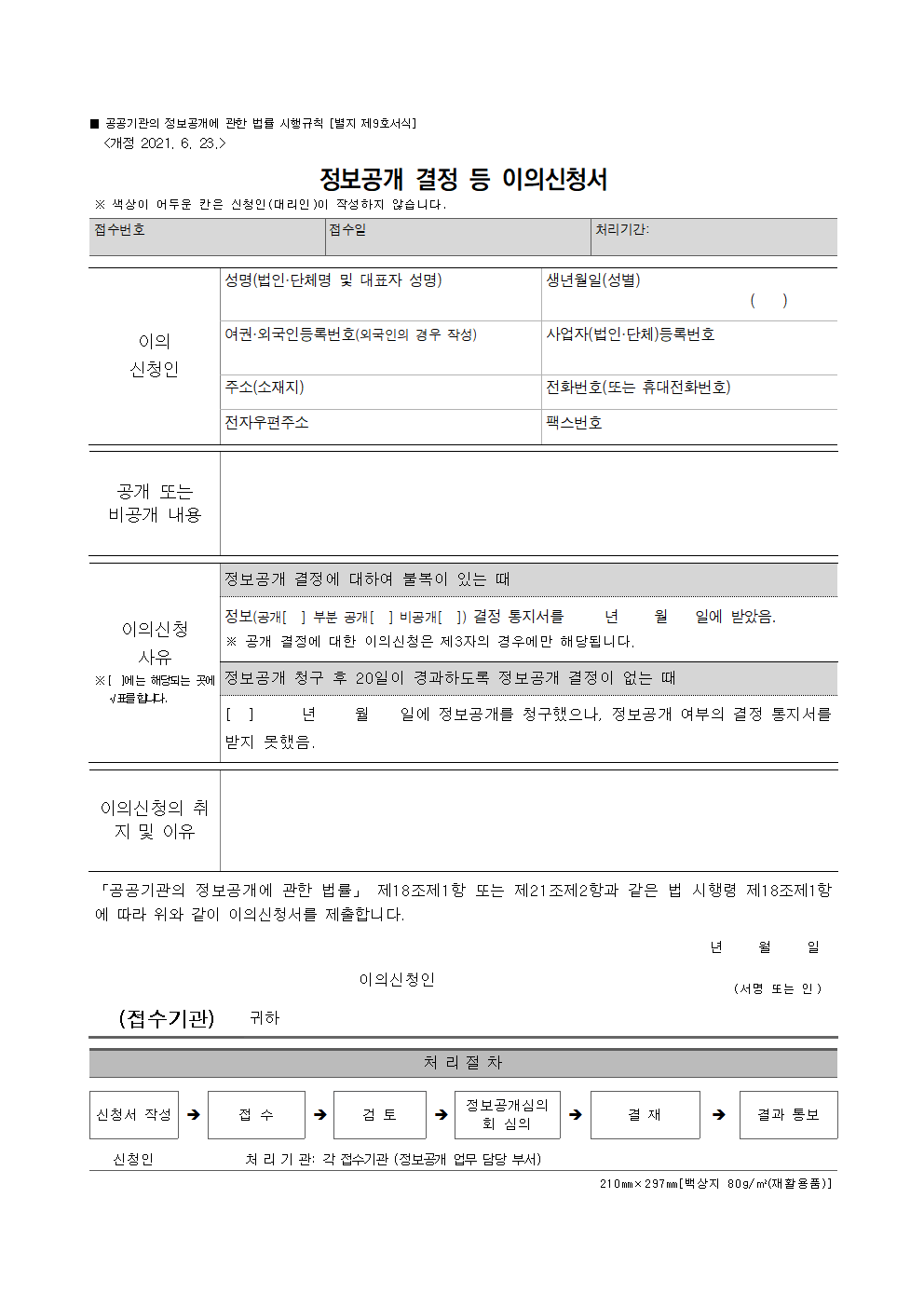 정보공개(비공개)결정 이의신청서