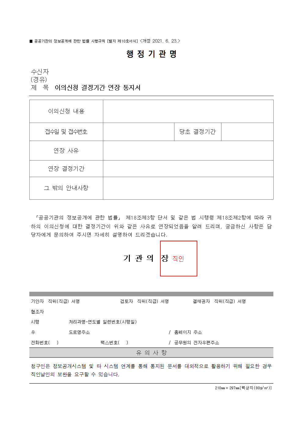 공개여부 결정기간 연장통지서 서식 다운로드