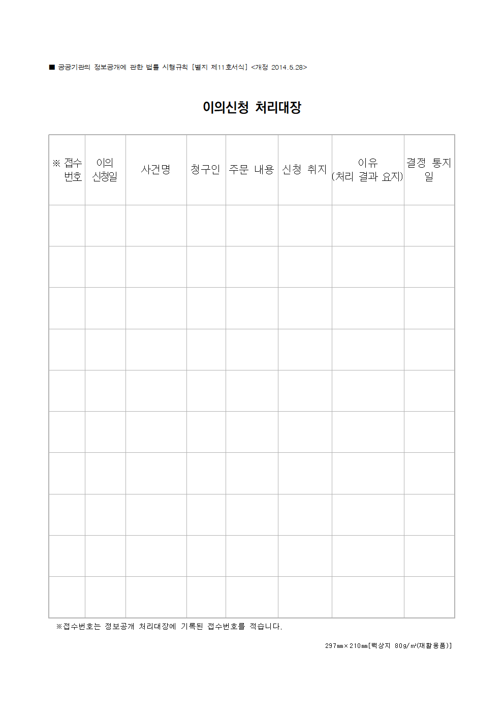 정보공개 처리대장 서식 다운로드