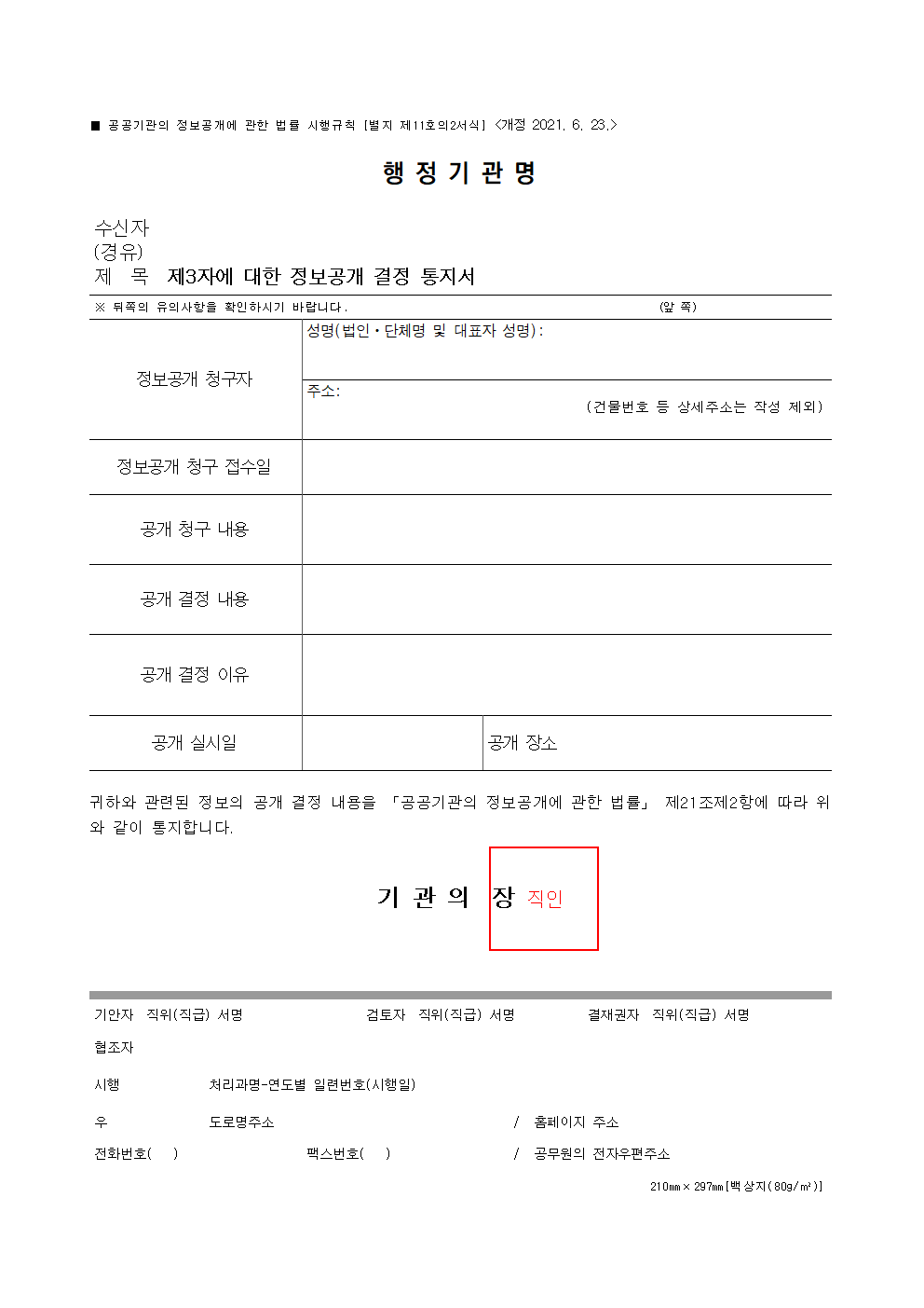 제3자에 대한 정보공개 결정 통지서 서식 다운로드