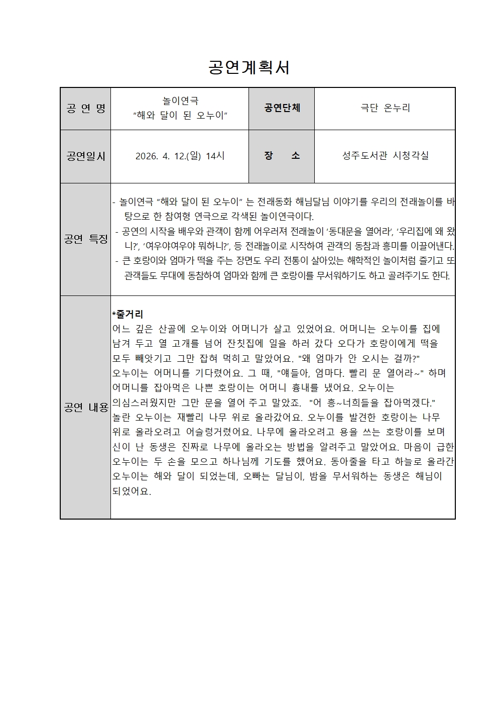 [4/12(일)] [공연] 해와 달이 된 오누이
