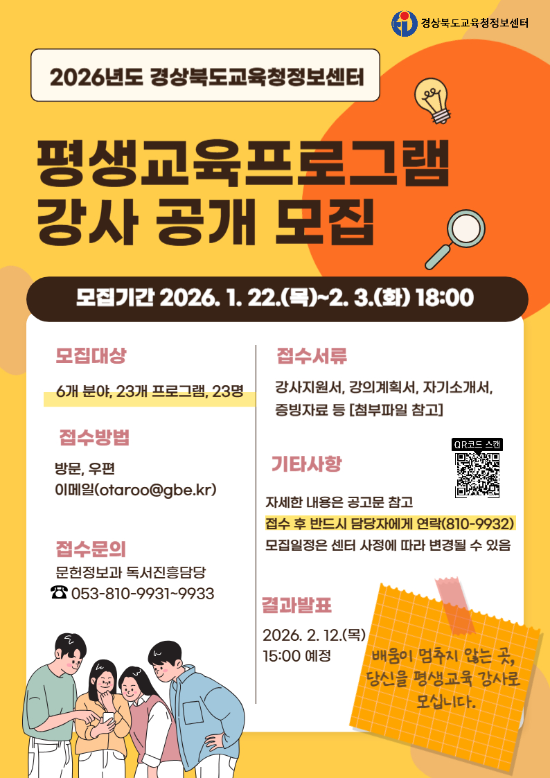 < 2026년도 경상북도교육청정보센터 평생교육프로그램 강사 공개 모집 >