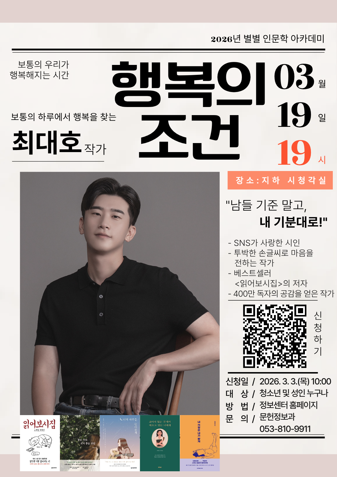 (3월) 최대호 시인 초청 특강 참가자 모집 - 별별 인문학