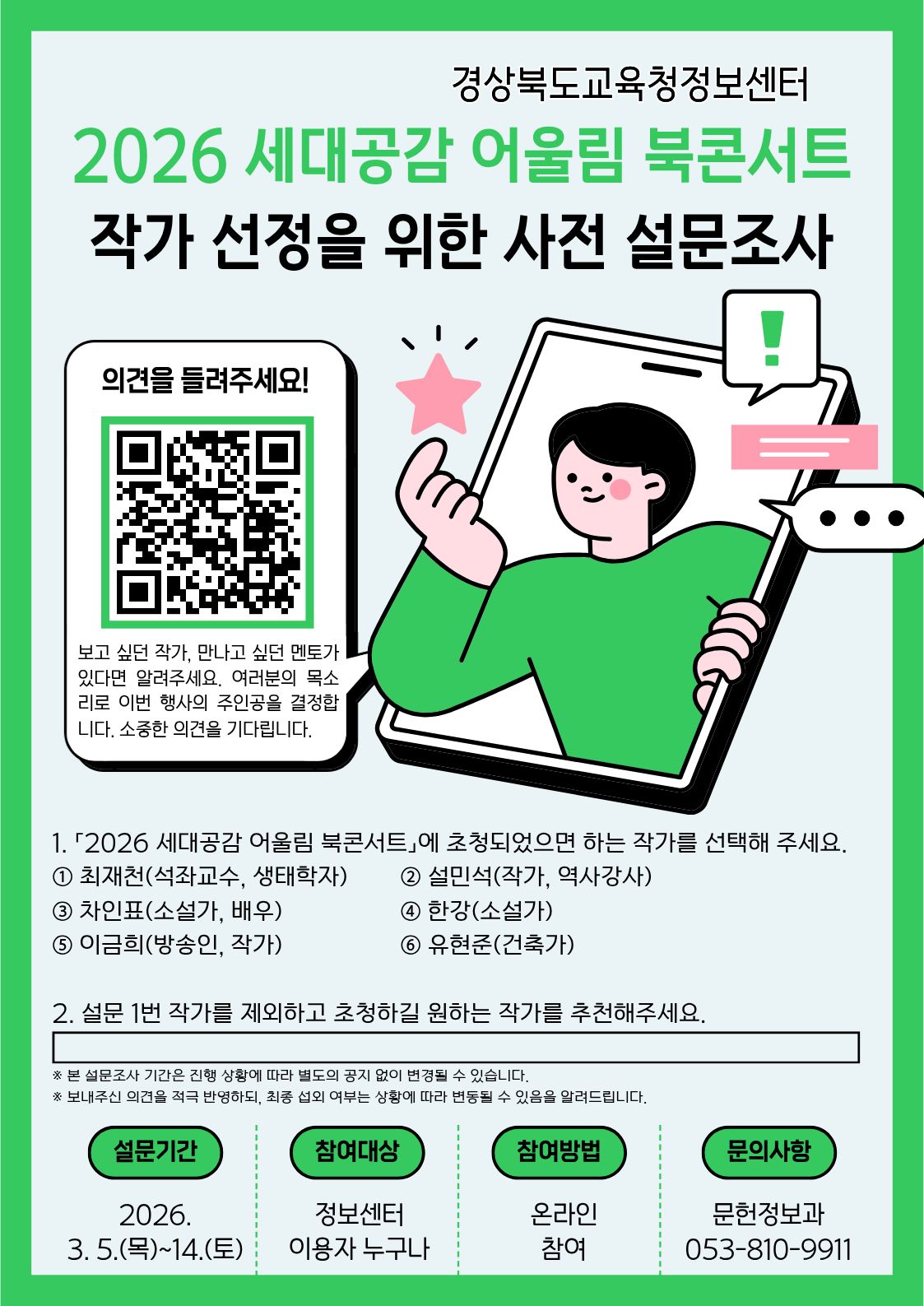 2026년 세대공감 어울림 북콘서트 작가 선정을 위한 사전 조사 설문 안내 포스터.jpg
