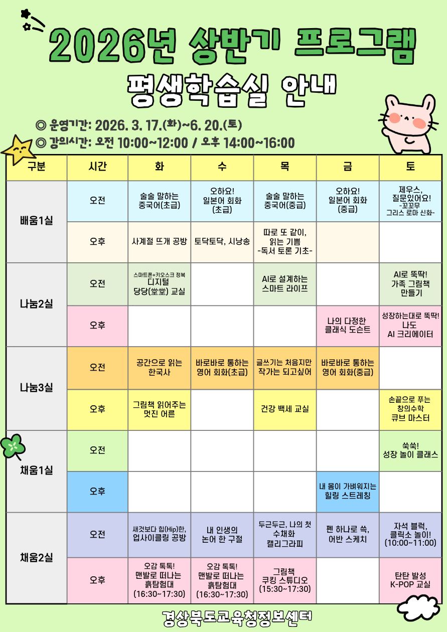 2026년 상반기 평생교육프로그램 평생학습실 안내