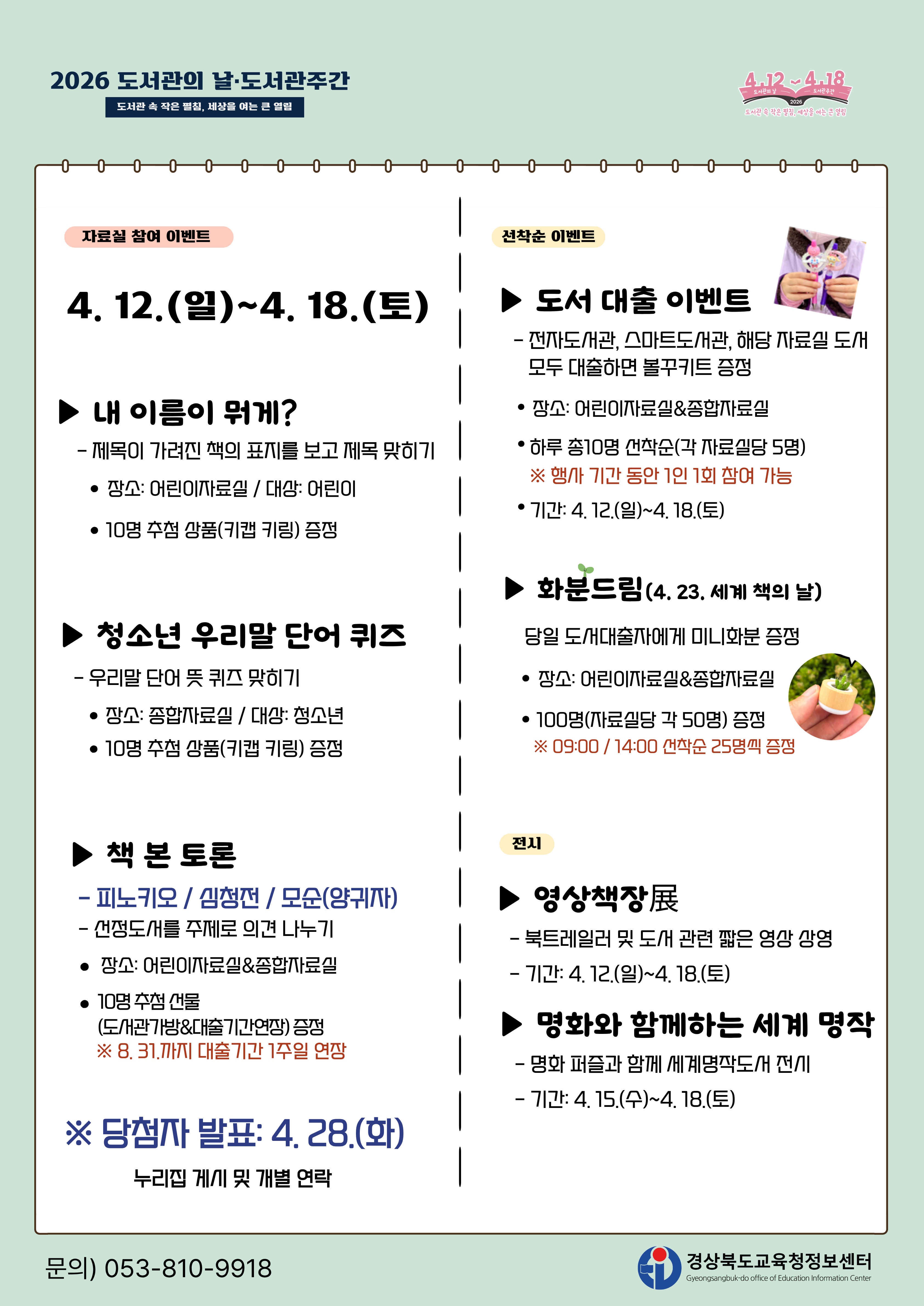2026년 도서관의 날·도서관주간 참여 이벤트 안내