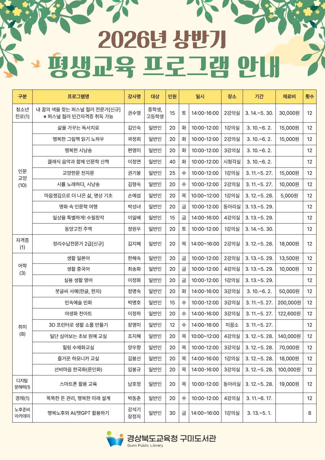 - 2026년 상반기 평생교육 프로그램 수강생 모집