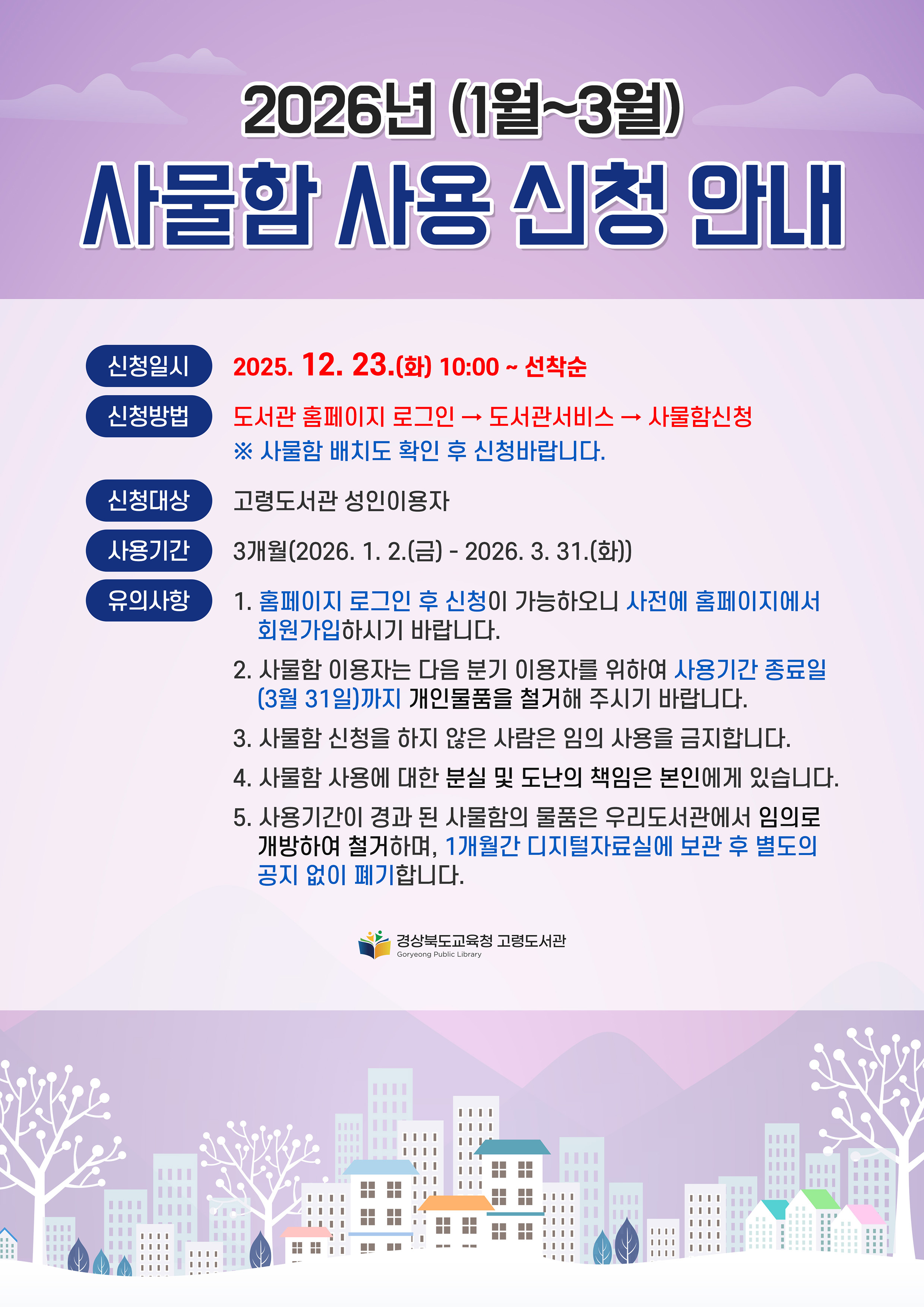 2026년 (1월~3월) 사물함 사용 신청 안내