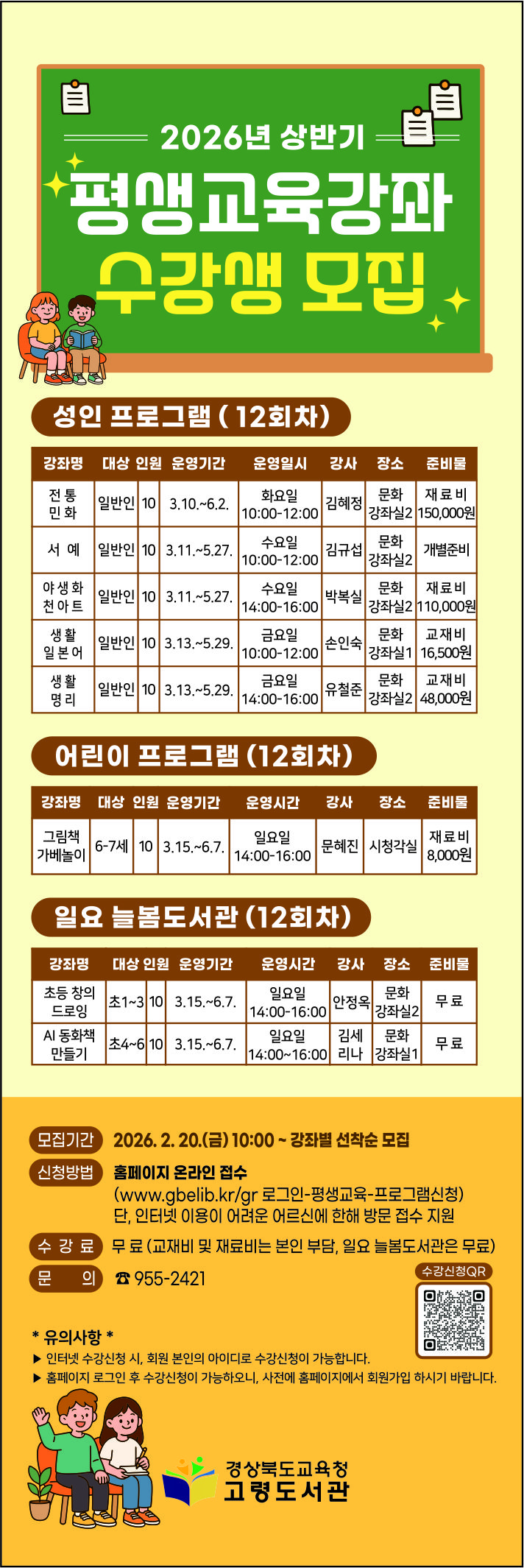 2026년 상반기 평생교육강좌 수강생 모집