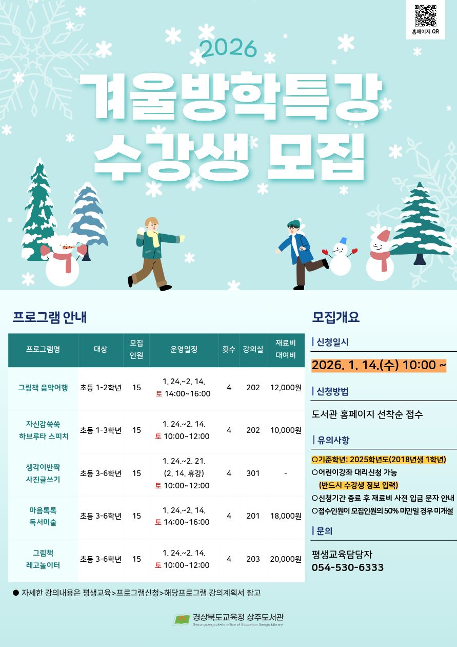 ▶ 「2026년 겨울방학특강」 수강생 모집 ◀