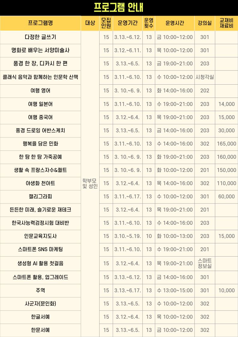 - [모집] 2026년 상반기 평생교육프로그램 수강생 모집