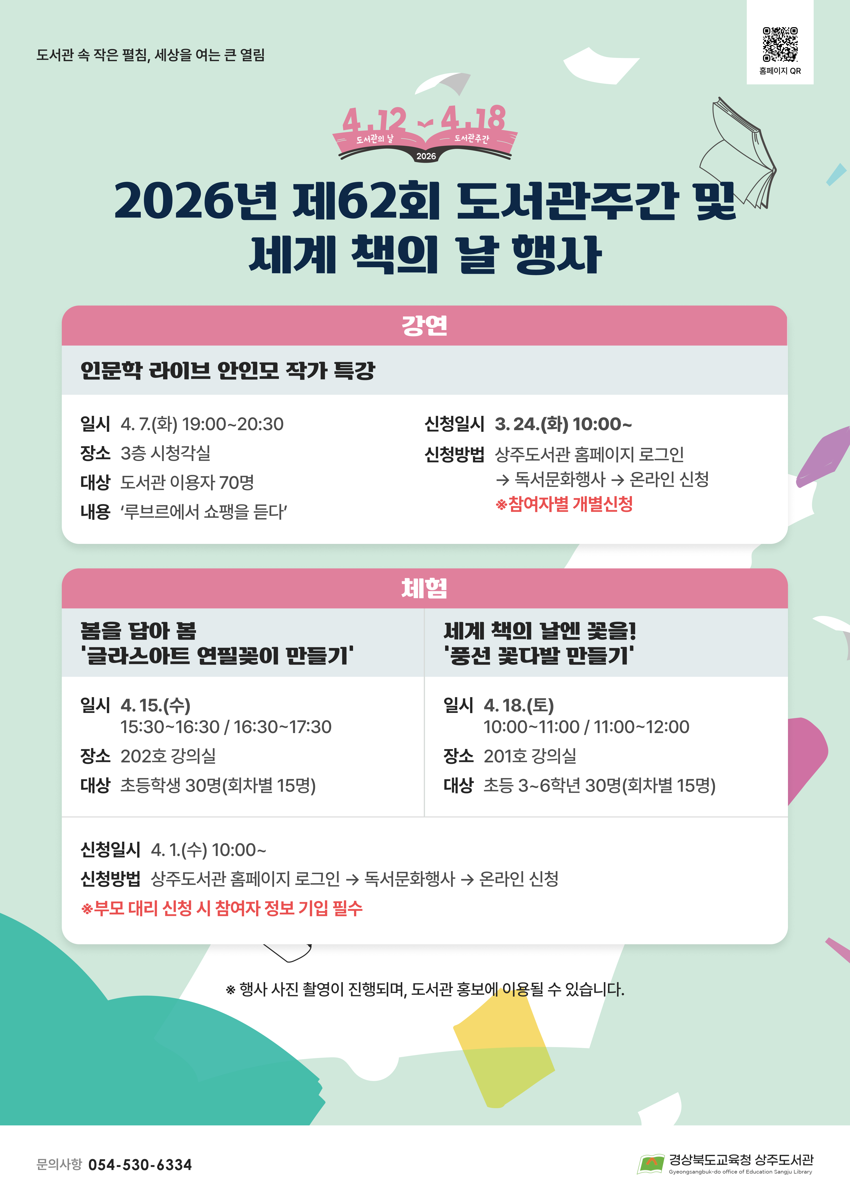 2026년 제62회 도서관주간 및 세계 책의 날 행사 안내