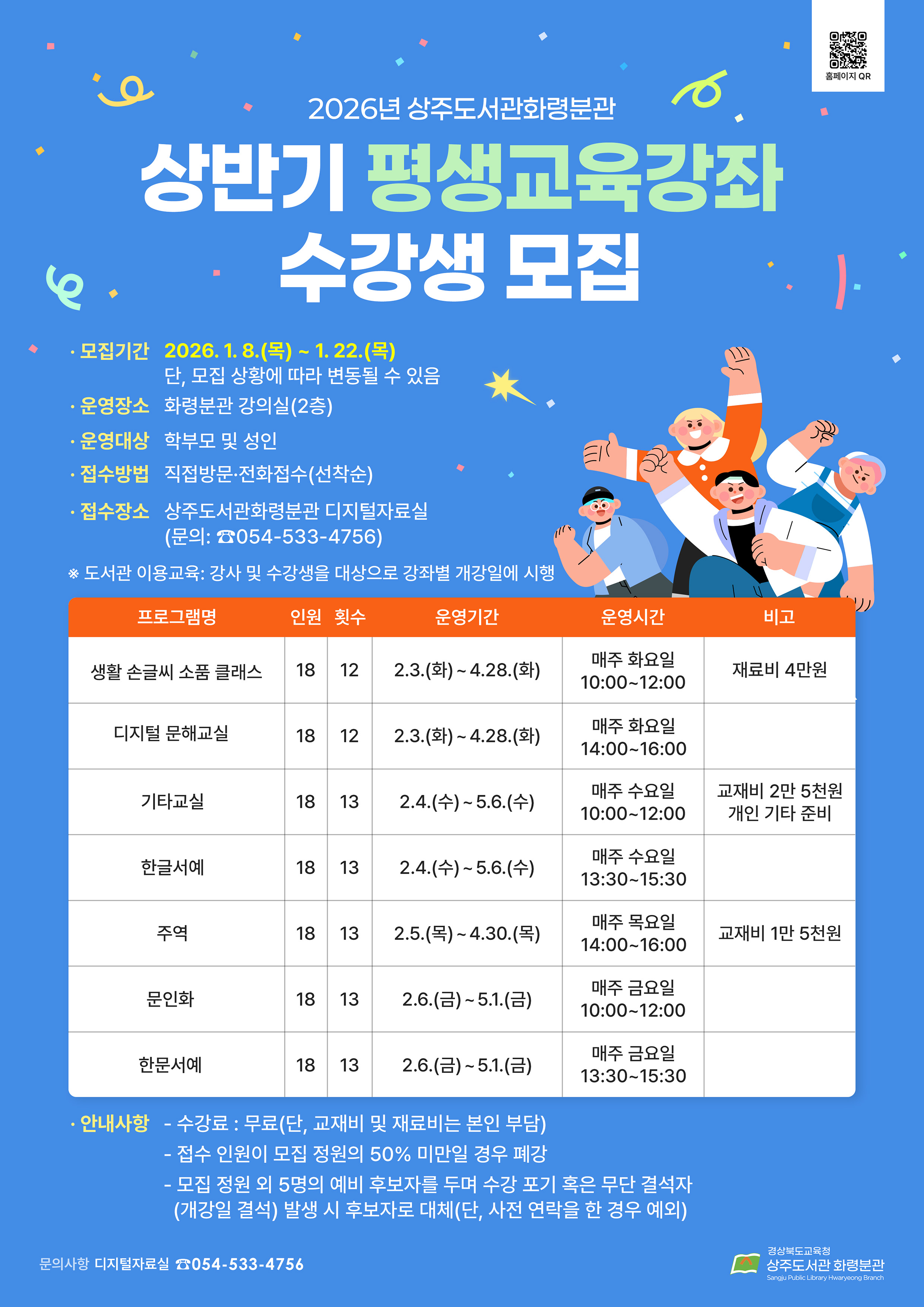 2026년 상반기 평생교육프로그램 수강생 모집