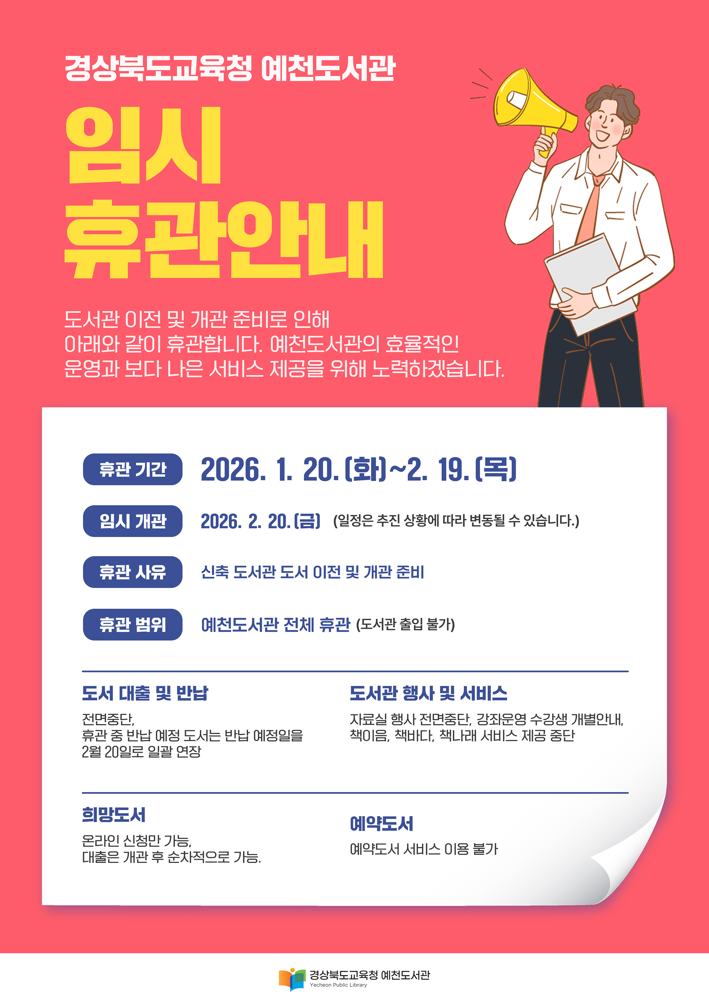 2026년 예천도서관 임시 휴관 안내