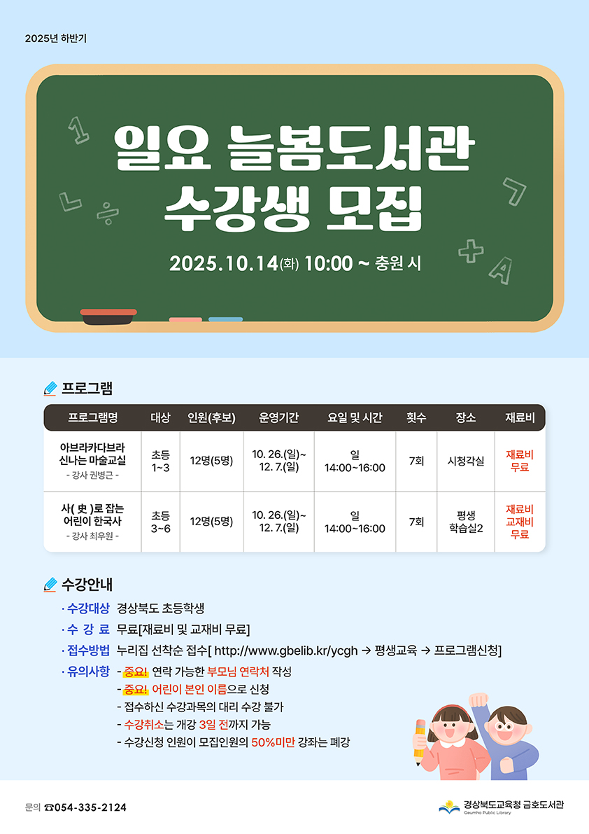 - 2025년 하반기 일요 늘봄도서관 수강생 모집 안내