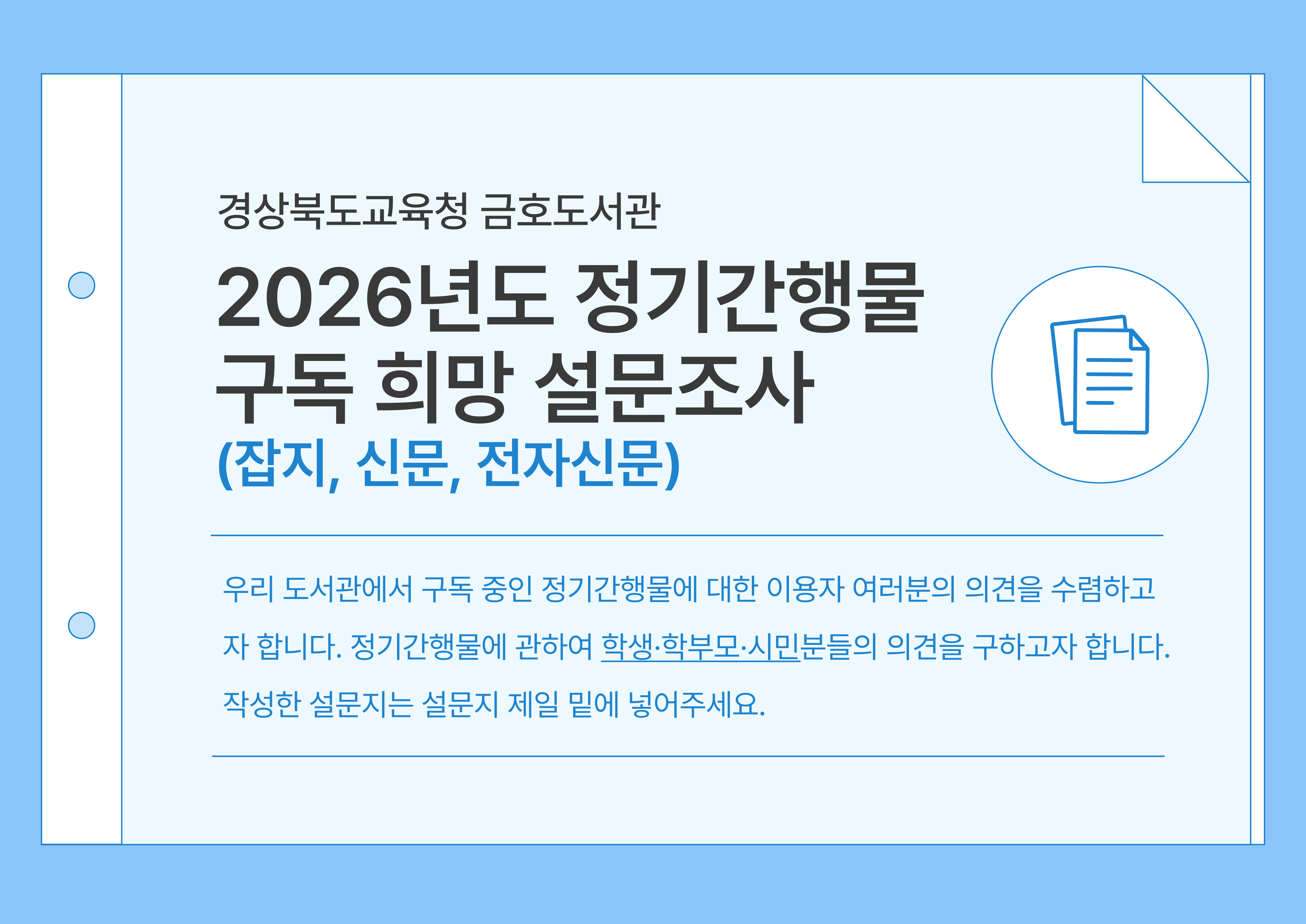 우리도서관의 2026년 정기간행물 구독 설문조사를 실시합니다