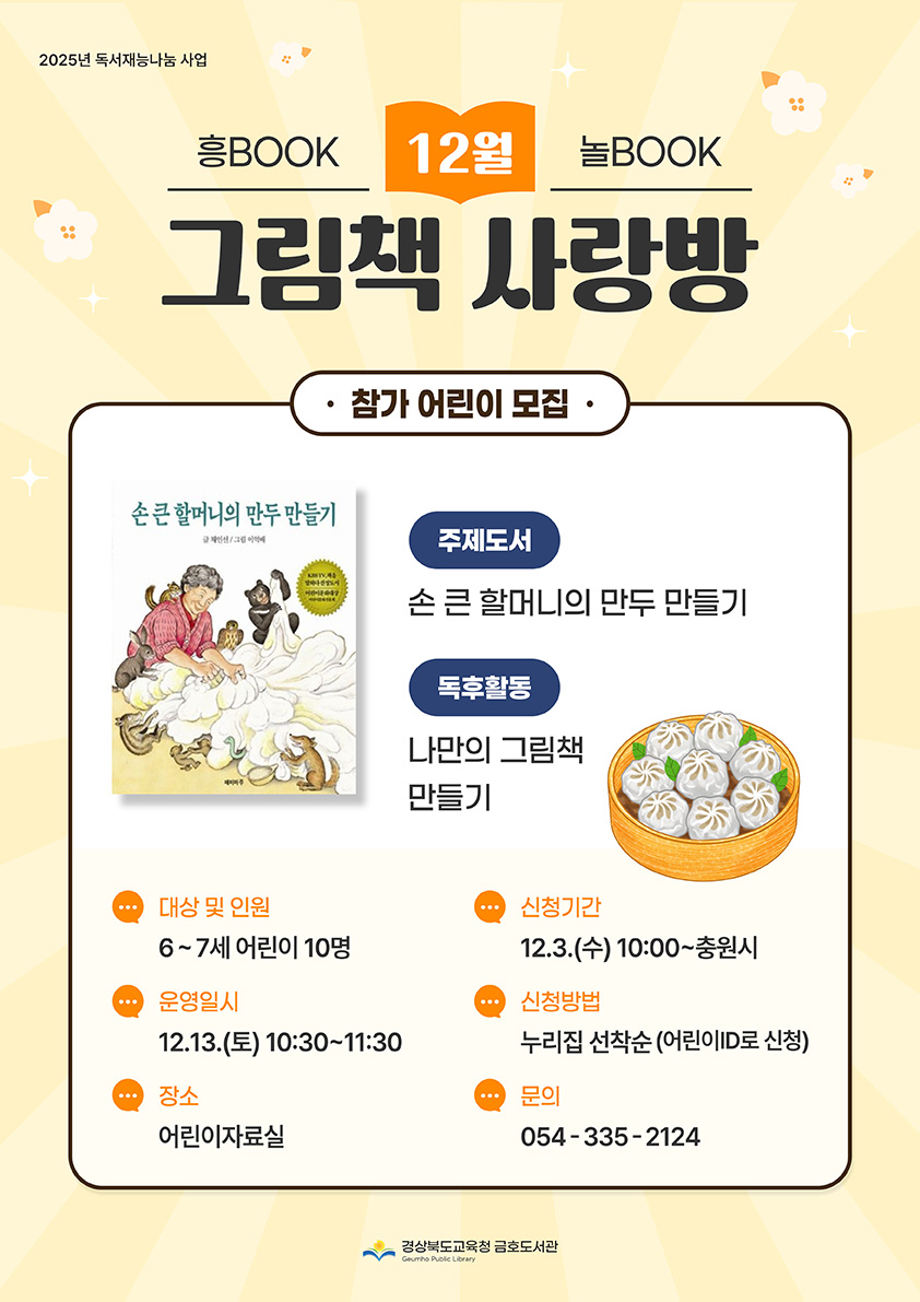 * 12월 흥BOOK놀BOOK 그림책 사랑방 참가 어린이를 모집합니다.