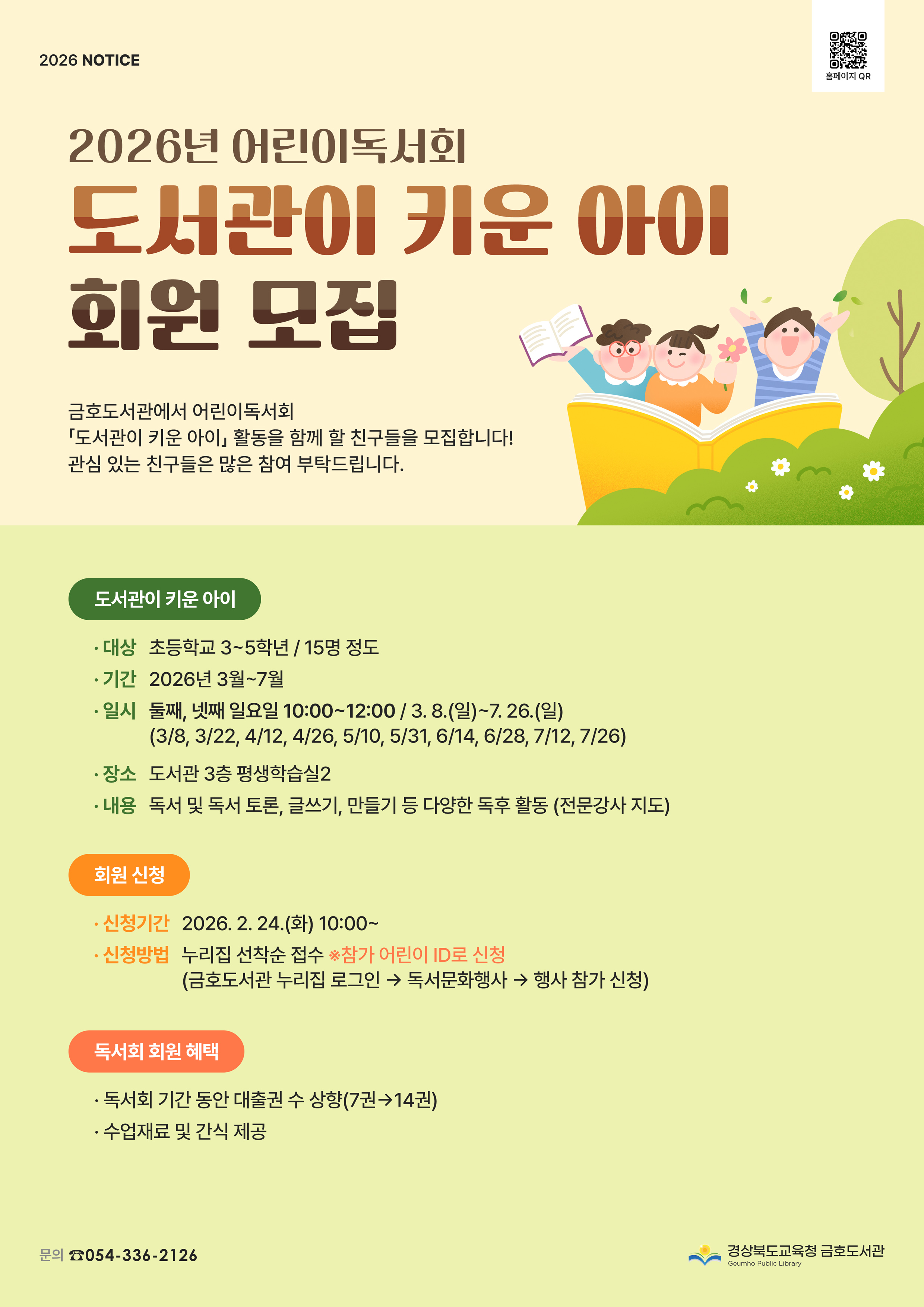 2026년 어린이독서회「도서관이 키운 아이」회원 모집