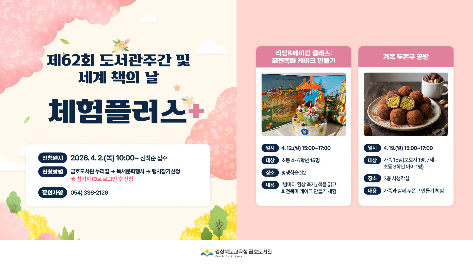 ★제62회 도서관주간 및 세계 책의 날 체험 접수 안내