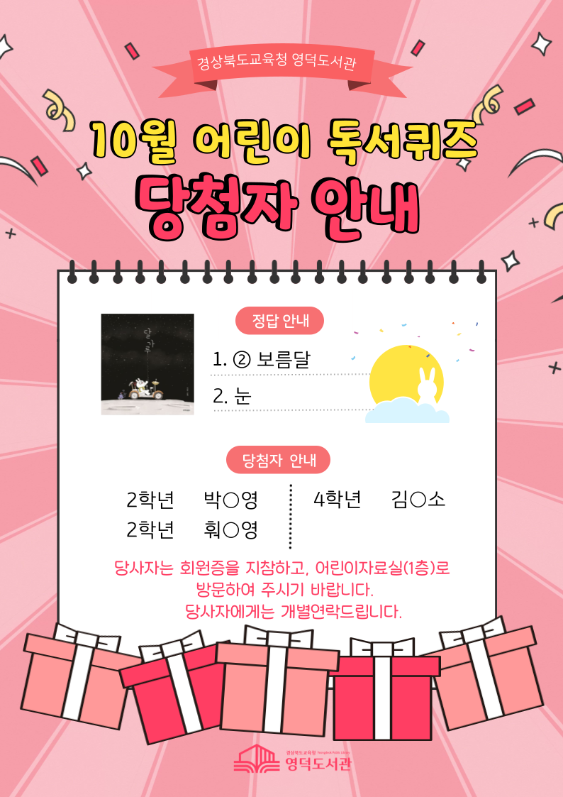 2025년 10월 어린이 독서퀴즈 당첨자 안내