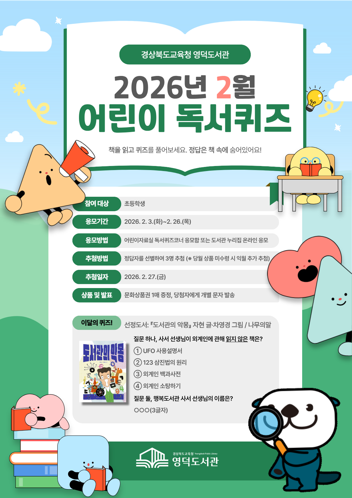 2026년 2월 어린이 독서퀴즈 안내