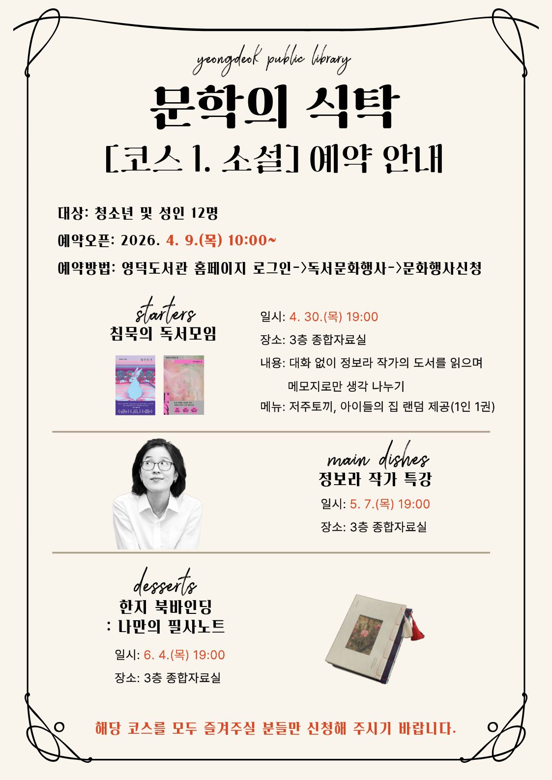 [문학의 식탁: 1기 소설 코스] 예약 신청 안내