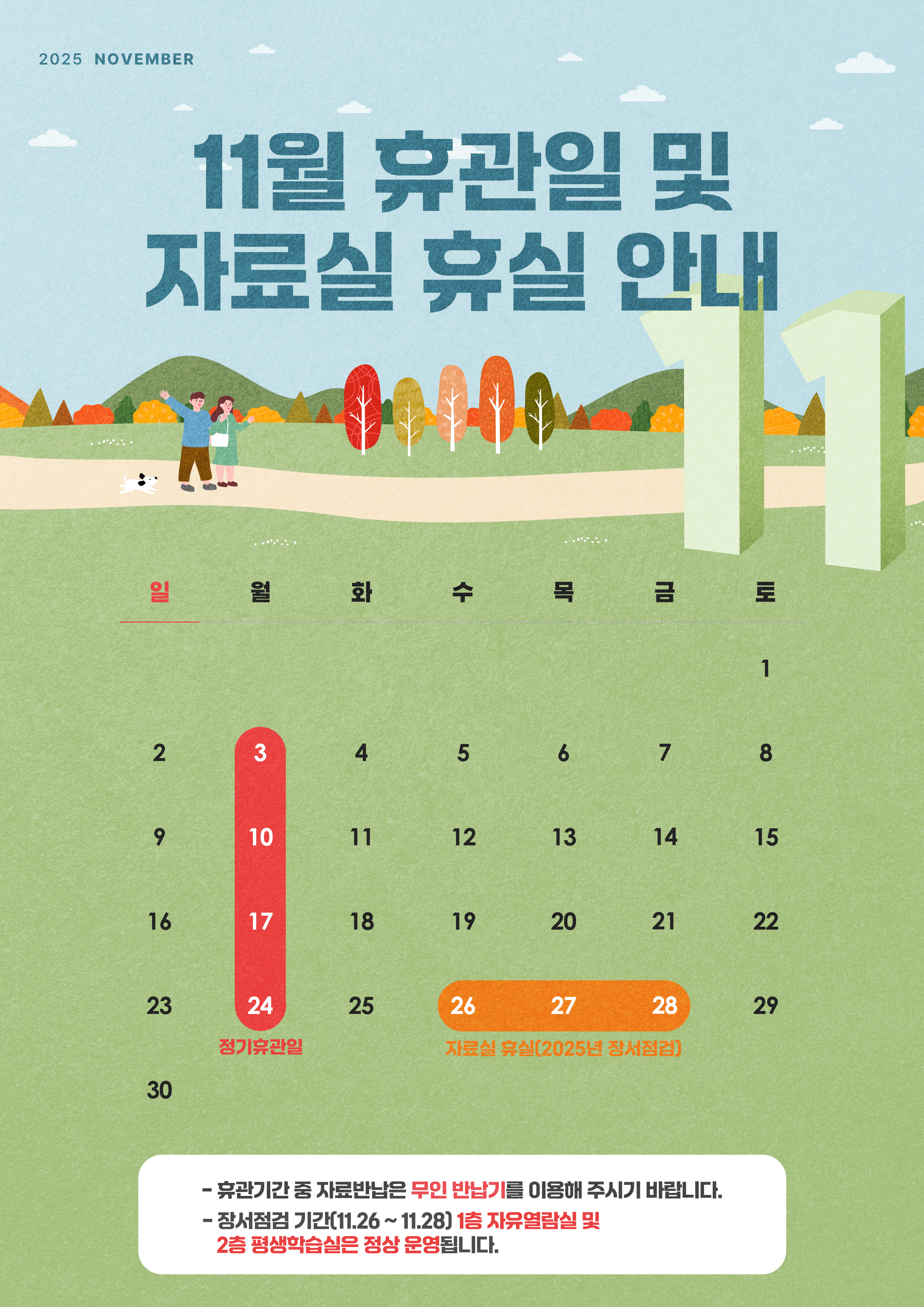 2025년 11월 휴관일 및 자료실 휴실 안내