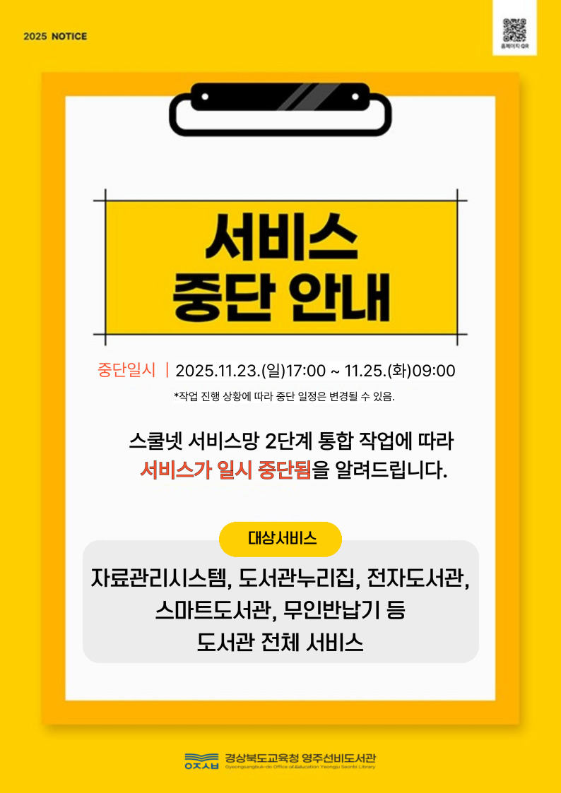 스쿨넷 서비스망 2단계 통합 2차 작업에 따라 서비스가 일시 중단됨을 알려드립니다.