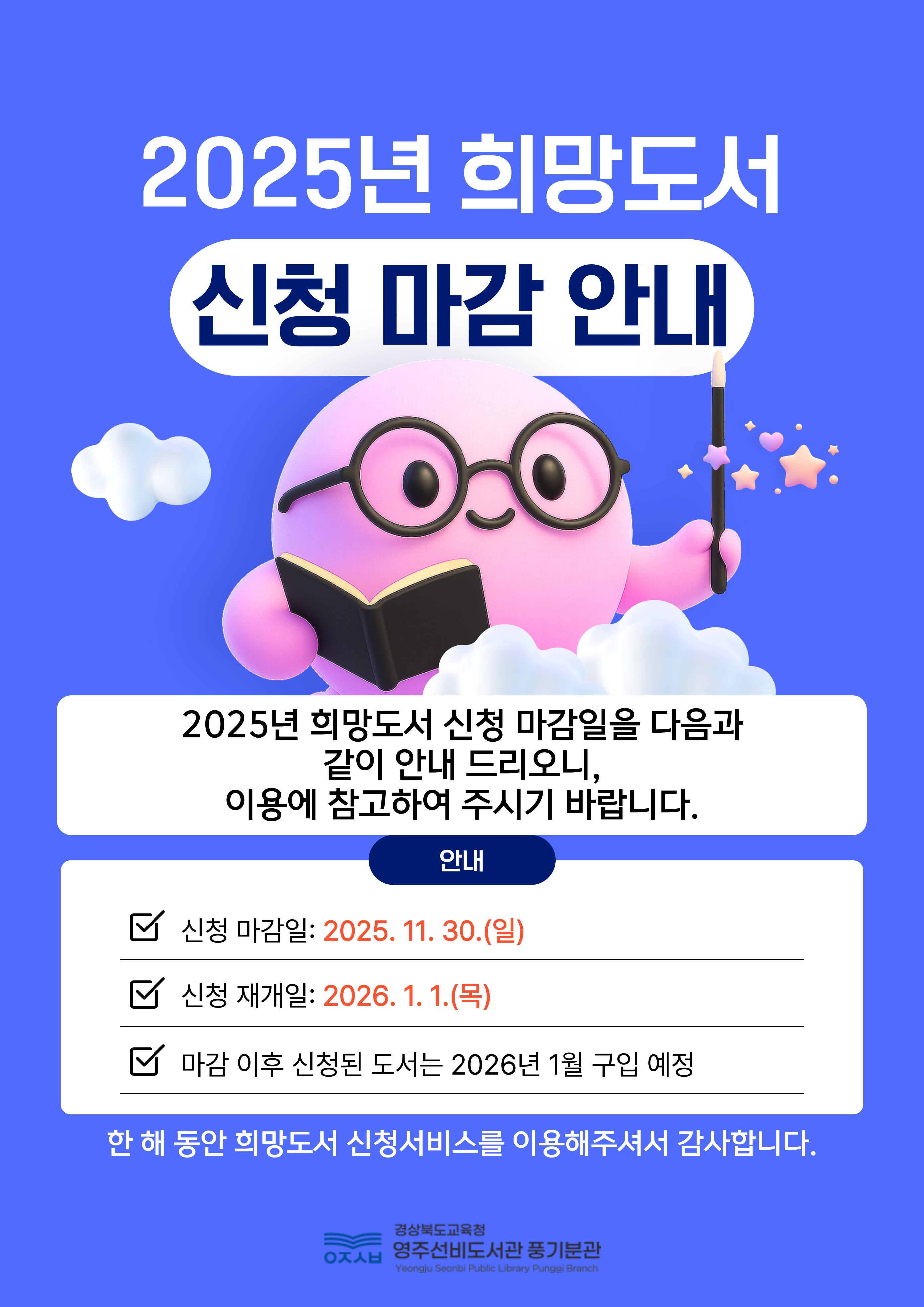 2025년 희망도서 신청 마감 안내