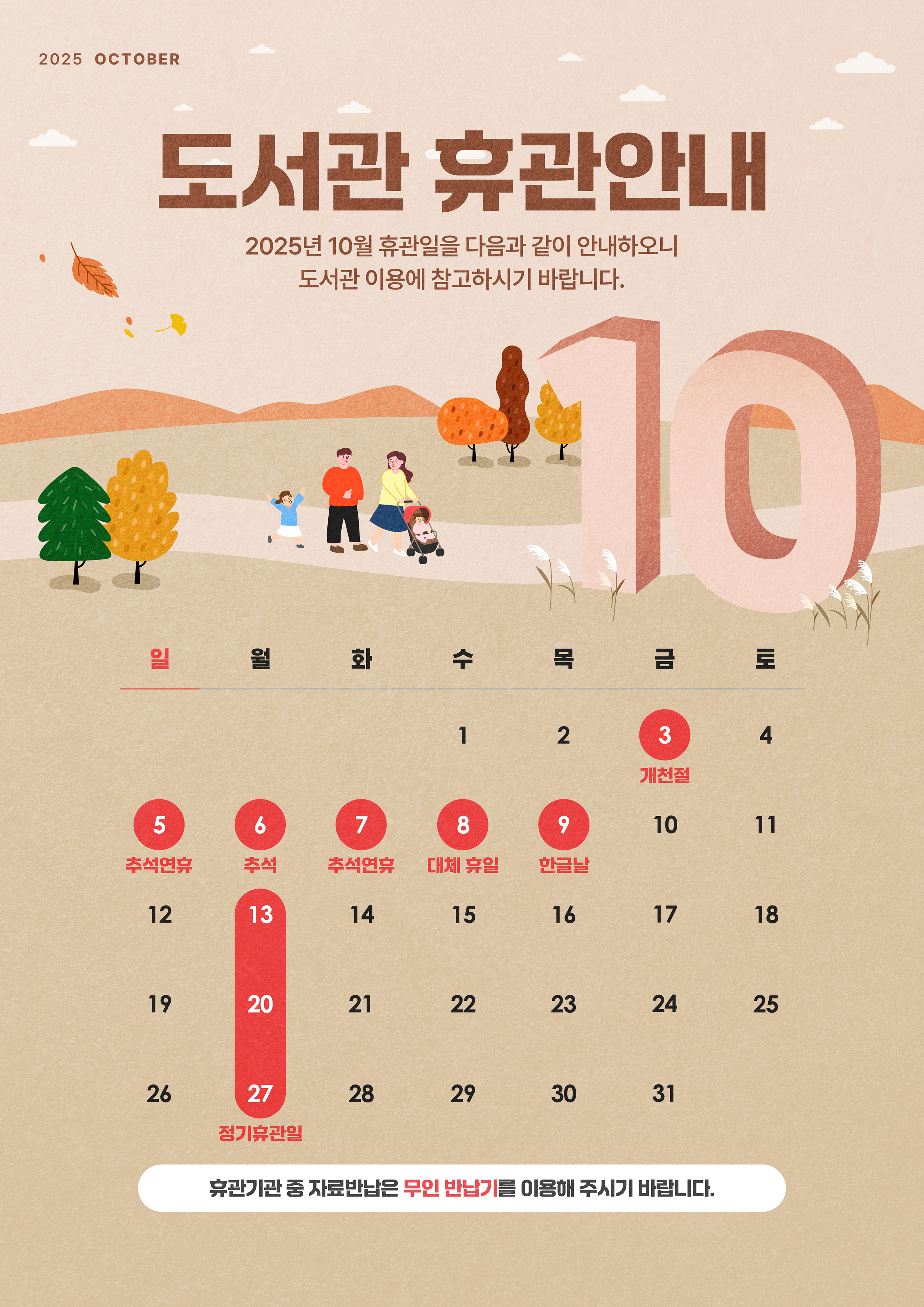 [안내] 10월 휴관일 안내