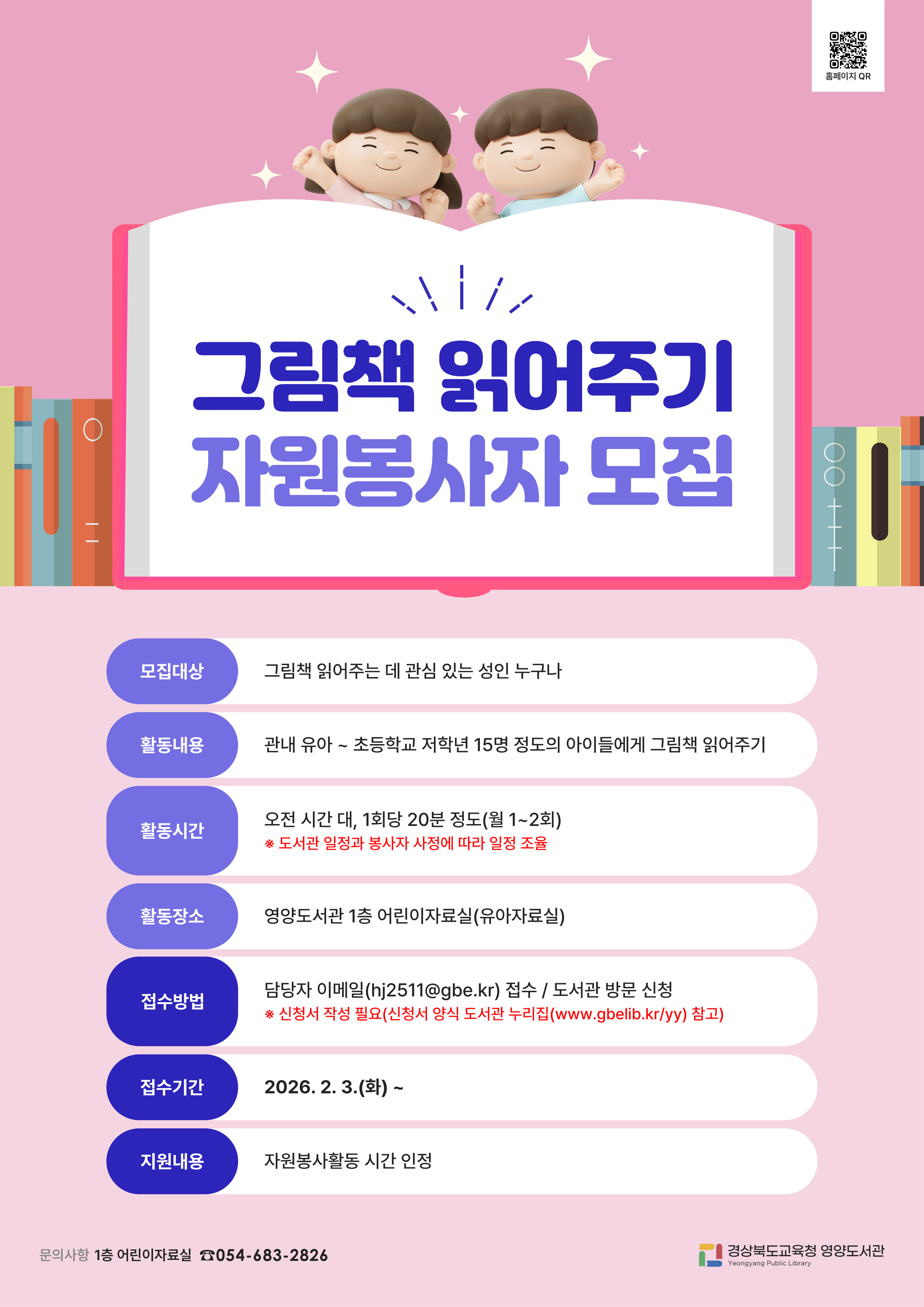 [안내] 2026년 그림책 읽어주기 자원봉사자 신청 안내