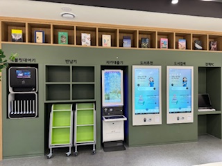 1층 옥외 부스에 설치된 스마트도서관에 비치되어 있는 도서 중 원하는 도서를 선택하여 현장에서 바로 대출·반납할 수 있는 24시간 비대면 자동화 서비스입니다.